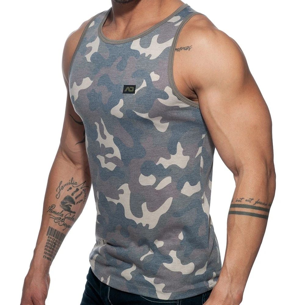 Débardeur en mélange doux et léger à base de viscose. Motif camouflage délavé. Coupe ajustée avec col rond. Logo Addicted en silicone sur la poitrine.