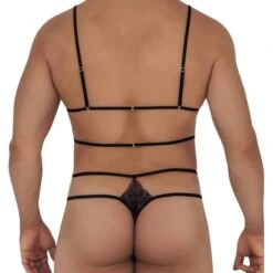 Ensemble sexy et provocant constituĂ© d’un harnais et d’un string. DĂ©tails en dentelle transparente. Harnais façon soutien-gorge avec bretelles rĂ©glables et fermeture par clip mĂ©tallique au dos. String en mesh imprimĂ© d’un motif reptile et dotĂ© de multiples straps Ă©lastiques.