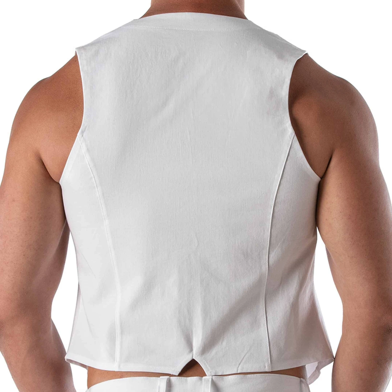 Gilet ouvert, élégant et sexy. Chaine métallique amovible à l’avant. Plaque TOF sur la poitrine gauche. Fabrication française.