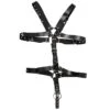 Harnais en simili cuir avec rivets mĂ©talliques plats. 4 sangles ajustables reliĂ©es par 4 anneaux mĂ©talliques. Taille unique. Ădition limitĂ©e.