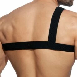 Harnais trÚs sexy constitué de bandes élastiques épaisses relies par un anneau métallique. Clip fonctionnel massif et robuste. Taille XS/S : tour de poitrine 84 à 94 cm, M/L : 94 à 104 cm, XL/XXL : 104 à 114 cm.