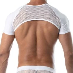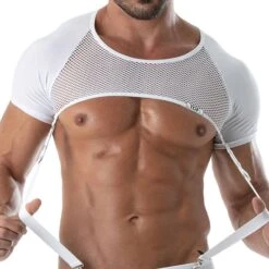 A mi-chemin entre le harnais et le crop top, cet accessoire original en mesh ajourĂ© dispose de manches courtes et d’un col rond. 2 boucles mĂ©talliques pour attacher les bretelles (vendues sĂ©parĂ©ment). Logo TOF argentĂ©. Fabrication française.