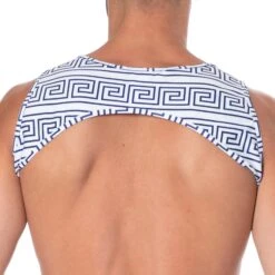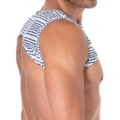Harnais trĂšs sexy en microfibre extensible et rĂ©sistante. ImprimĂ© inspirĂ© de la GrĂȘce antique. Coupe ajustĂ©e. Fabrication 100% italienne.