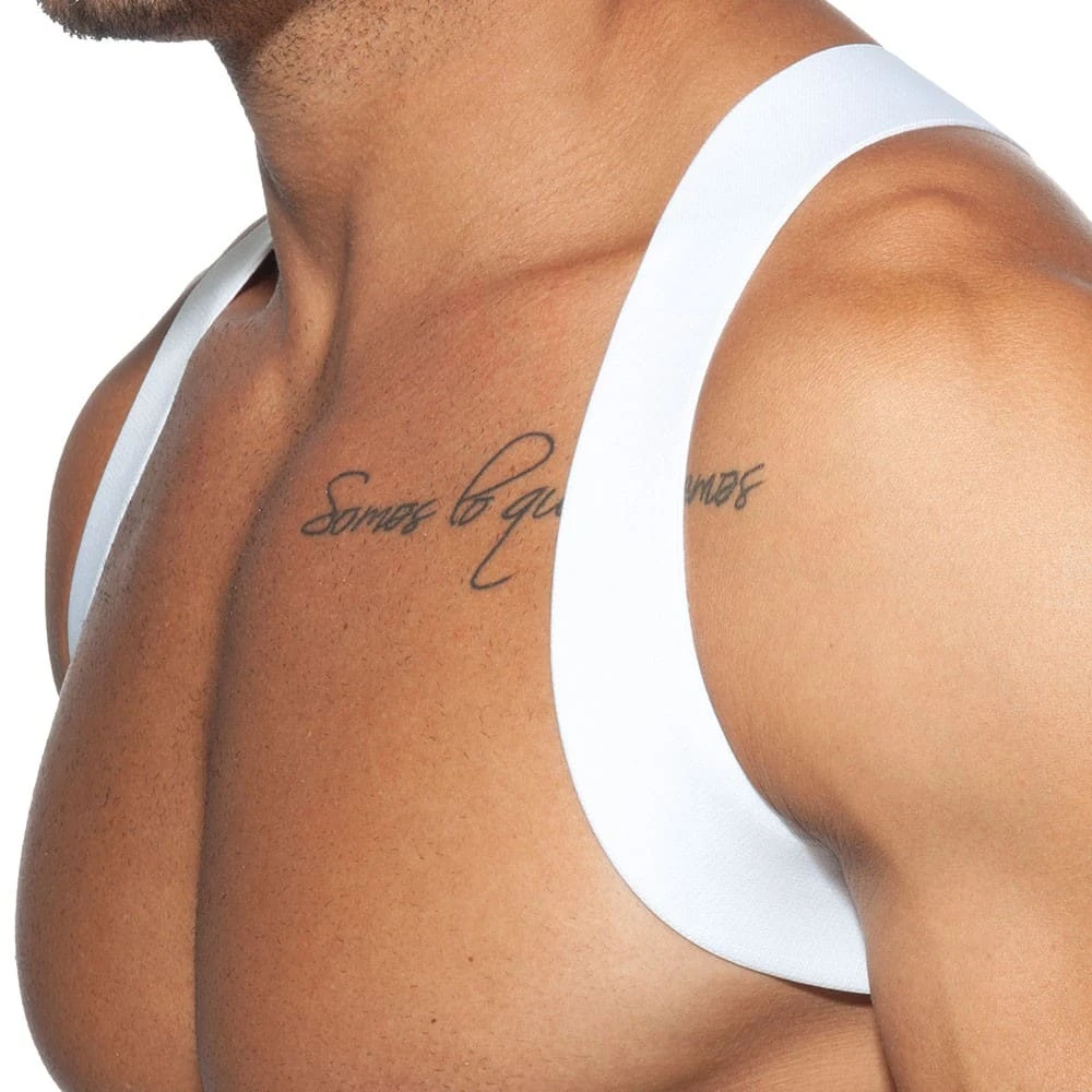 Harnais simple et confortable dont les larges bandes élastiques forment un X en haut du dos.