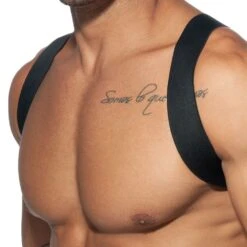 Harnais simple et confortable dont les larges bandes élastiques forment un X en haut du dos.