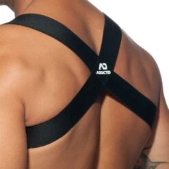 Harnais simple et confortable dont les larges bandes élastiques forment un X en haut du dos.