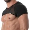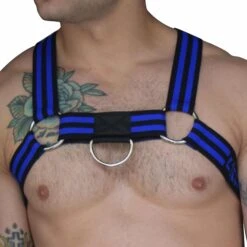 Harnais sexy constitué de bandes élastiques rayées. 5 anneaux métalliques. Logo Breedwell sur le cÎté.
