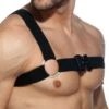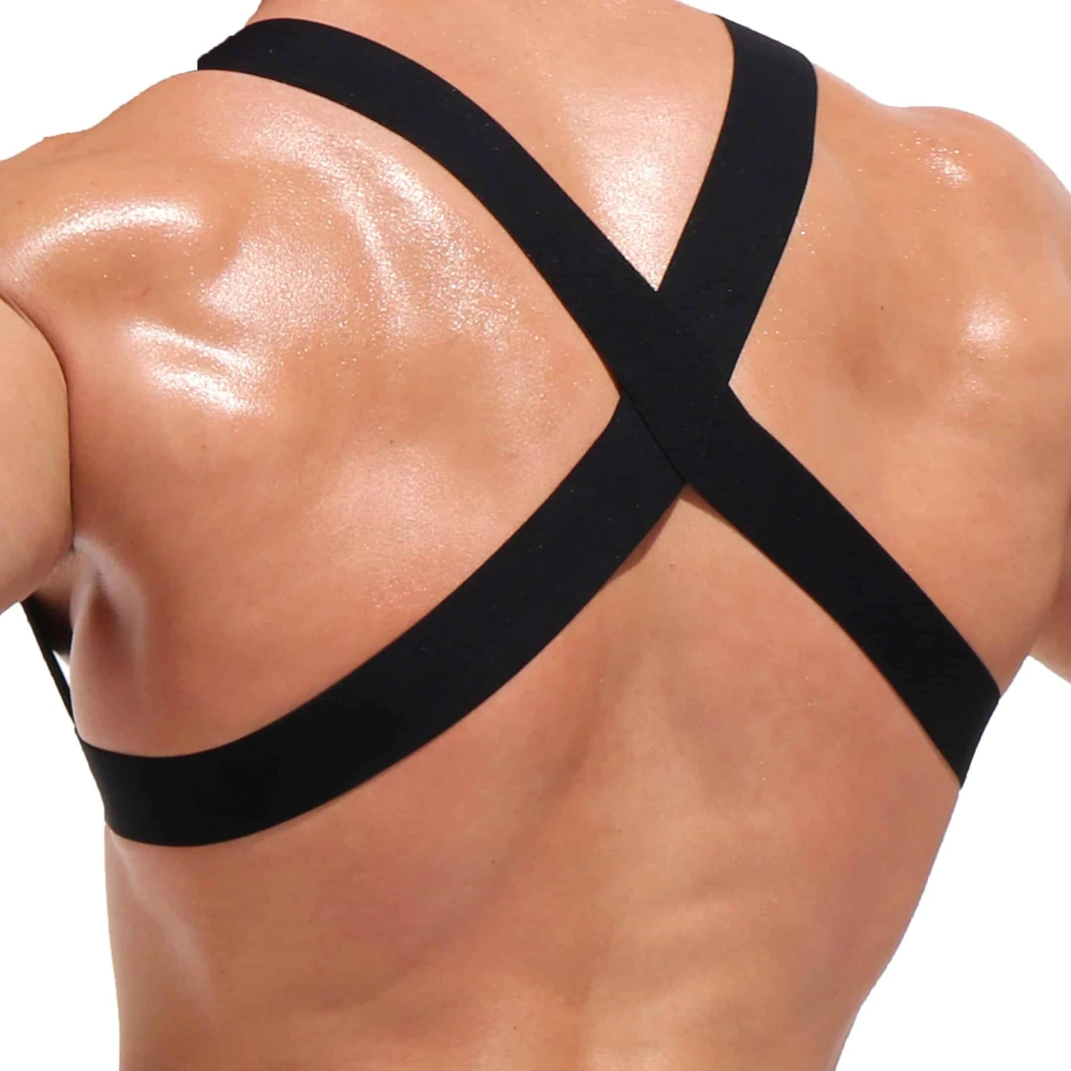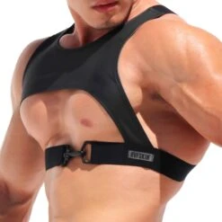 Harnais trĂšs sexy composĂ© d’un mĂ©lange de microfibre et de Spandex qui lui donne un aspect caoutchouteux mat. Bande Ă©lastique douce dotĂ©e d’une mousqueton sous la poitrine. FabriquĂ© en Californie.