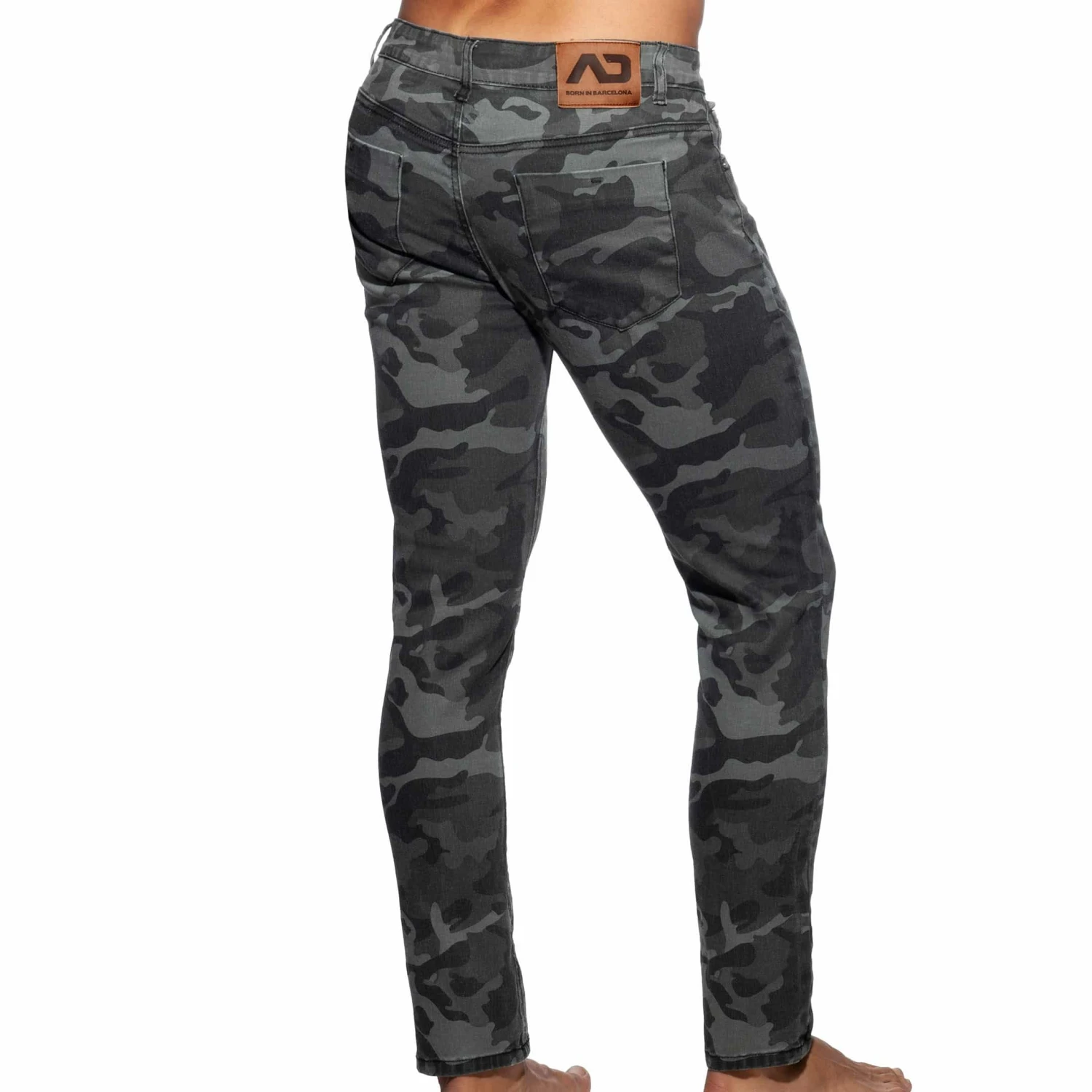 Pantalon en jeans stretch trĂšs rĂ©sistant et confortable. ImprimĂ© camouflage. Coupe taille basse, sexy et ajustĂ©e. 3 poches Ă l’avant et 2 poches Ă l’arriĂšre. Braguette Ă fermeture Eclair et bouton mĂ©tallique. Passants de ceinture.