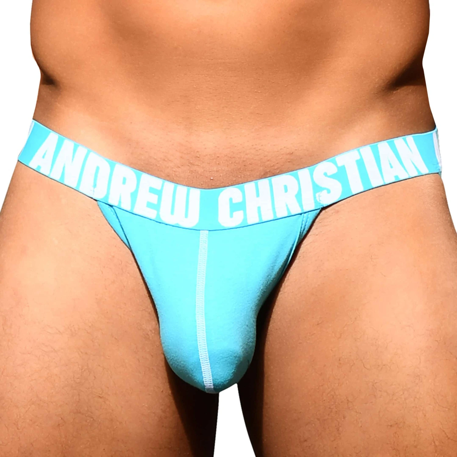 Jockstrap taille basse en coton doux et confortable. Poche frontale Almost Naked qui épouse et soutient les organes génitaux sans les comprimer. Couture verticale au milieu de la poche. Ceinture élastique amincissante signée Andrew Christian. Edition Limitée.