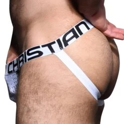 Jockstrap sport taille basse en mesh extensible, doux et respirant. Poche Almost Naked, qui épouse et soutient les organes génitaux, sans les comprimer. Bordures de couleur contrastée. Ceinture élastique amincissante signée Andrew Christian. Edition Limitée.