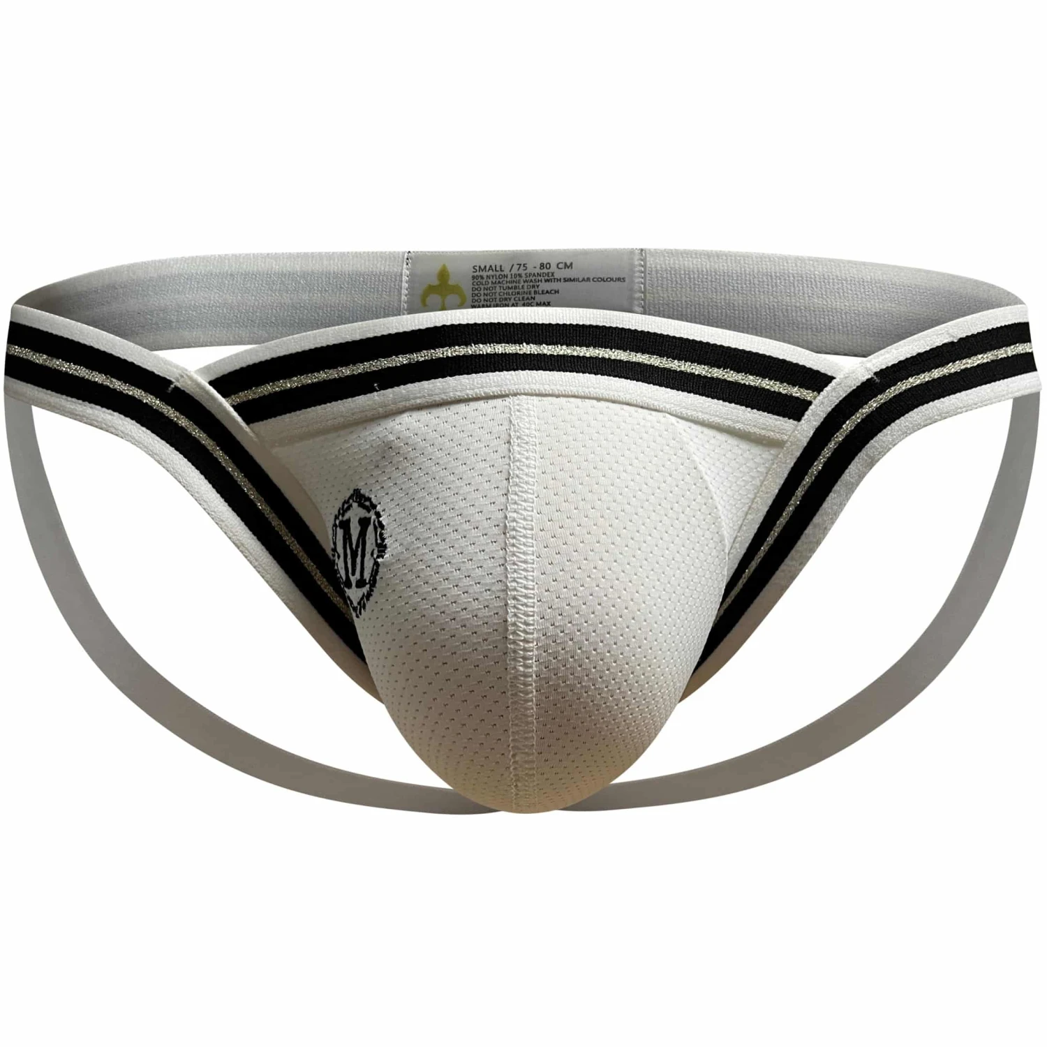 Jockstrap super taille basse en résille douce et soyeuse. Poche frontale 3D non doublée, encerclée par un strap élastique pour un bel effet push up. Logo Marcuse brodé devant.