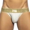 Jockstrap taille basse en coton extensible. Grande poche frontale non doublée. Bordures de couleur contrastée. Ceinture élastique jacquard signée TOF GEAR. Fabrication française.