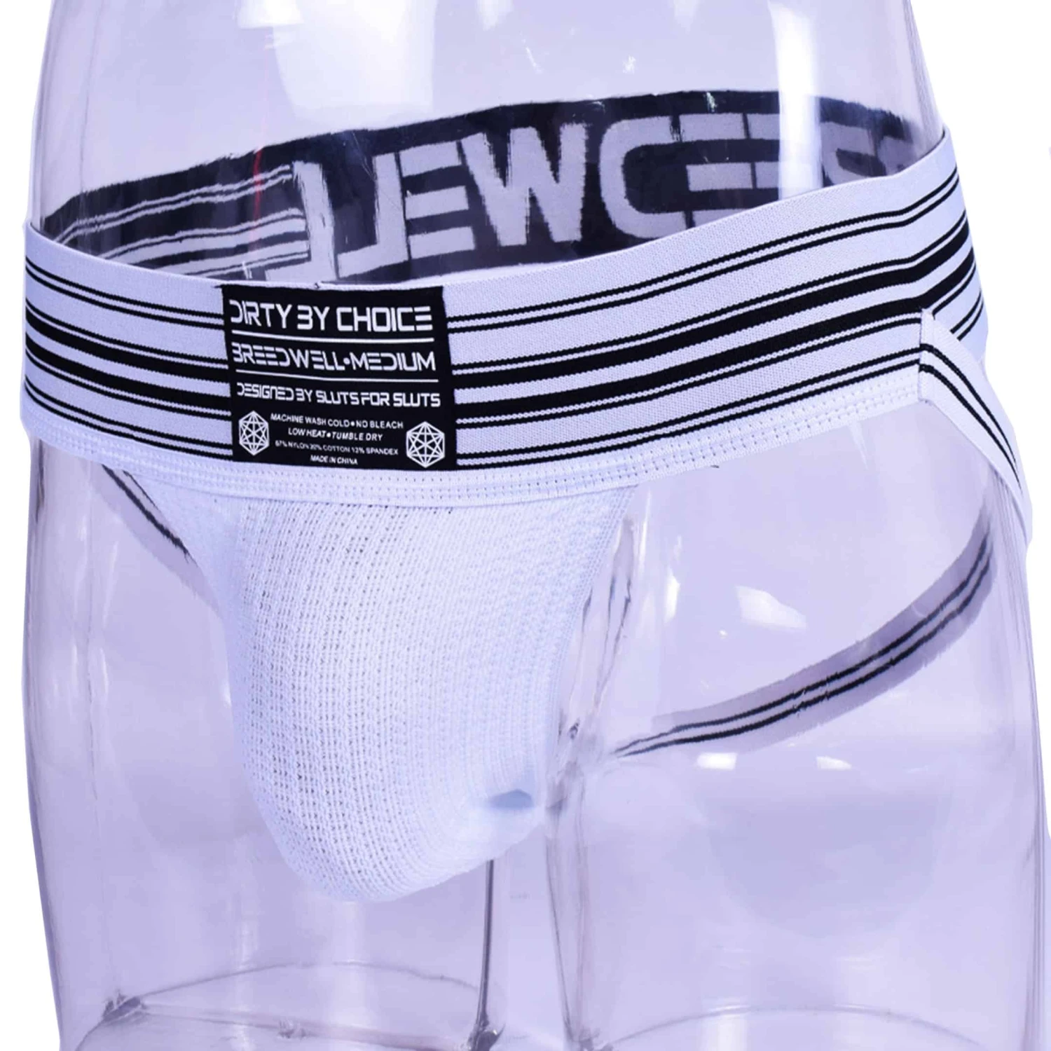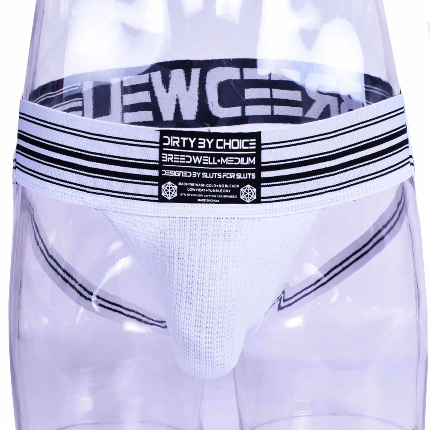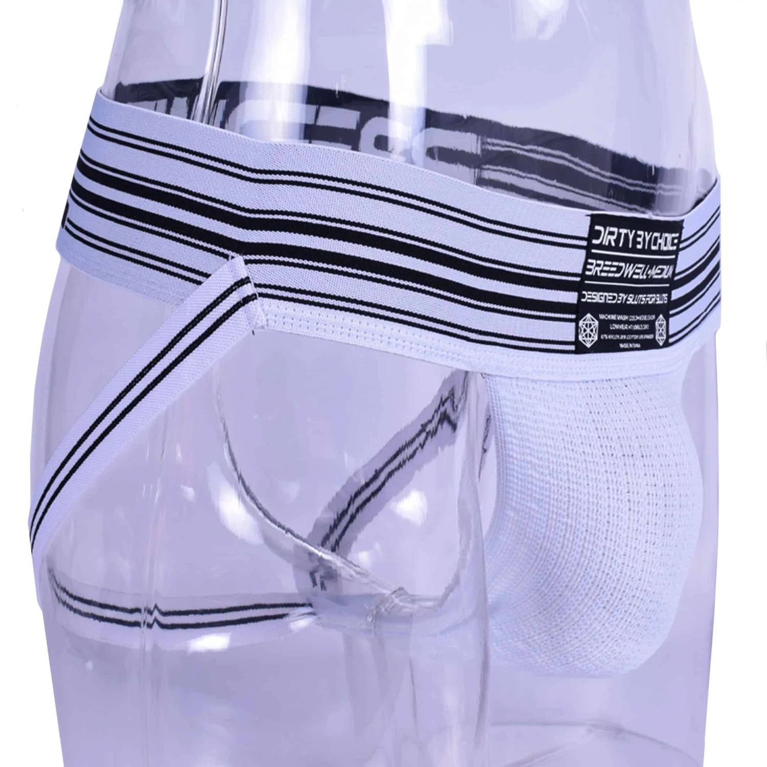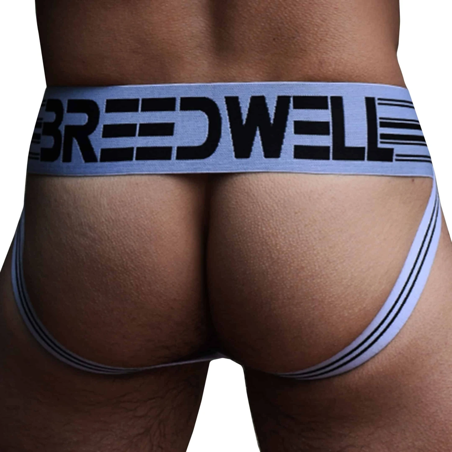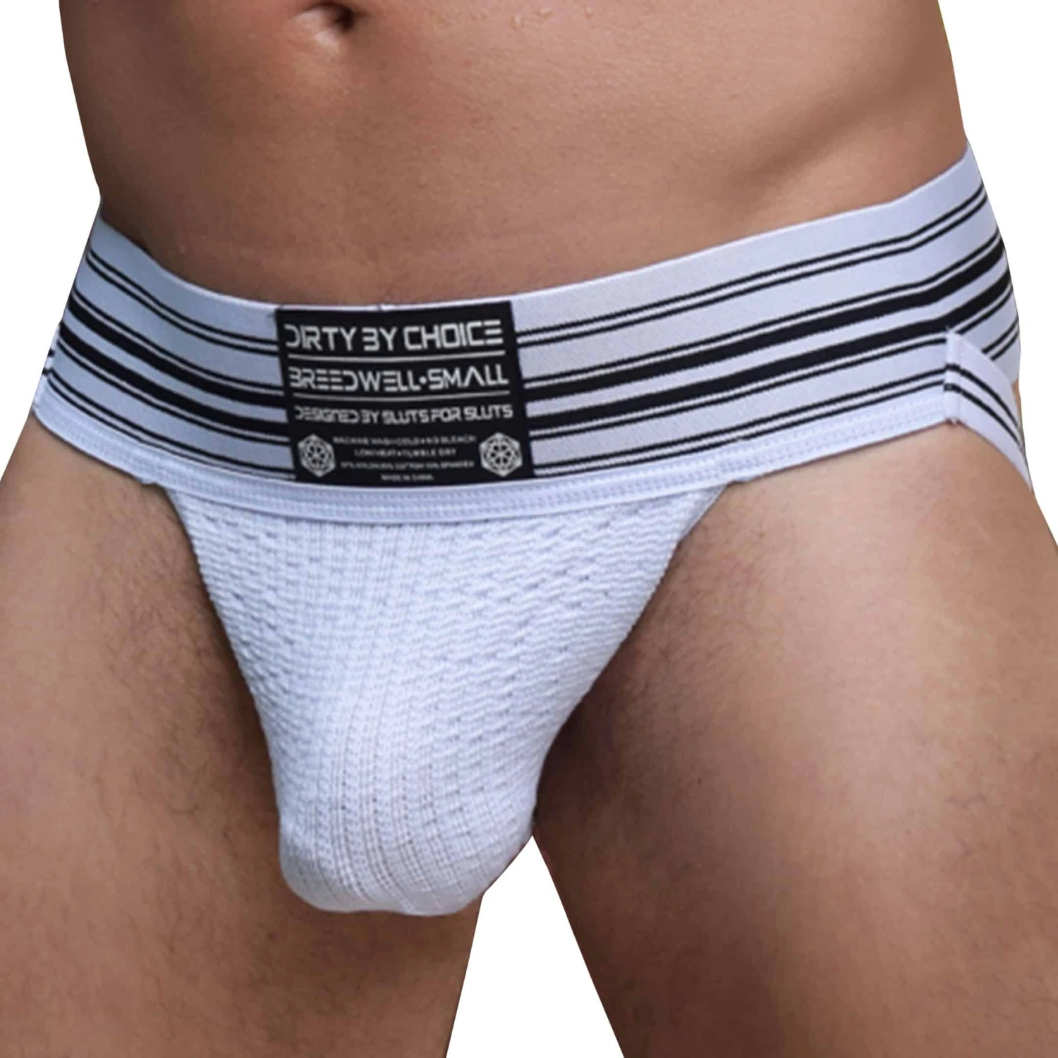 Jockstrap old-school en tissu extensiible tricoté. Poche frontale profonde. Ceinture élastique extra-large signée Breedwell.