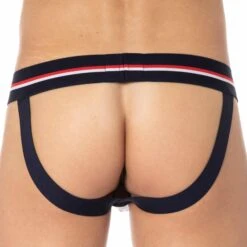 Jockstrap sport et sexy en coton premium doux et extensible de couleur intense. Coupe taille basse ajustée. Poche frontale préformée assurant un excellent maintien. Ceinture tricolore large et douce signée SKU. Bordures contrastées.