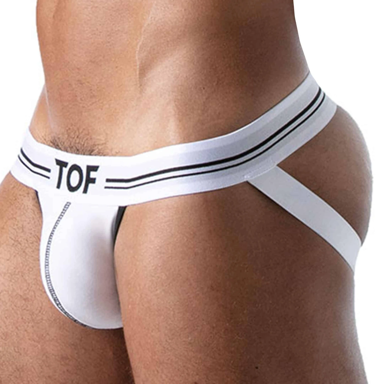 Jockstrap taille basse en coton stretch. Grande poche frontale soulignée par une couture verticale au milieu. Ceinture élastique en jacquard signée TOF. Fabrication française.