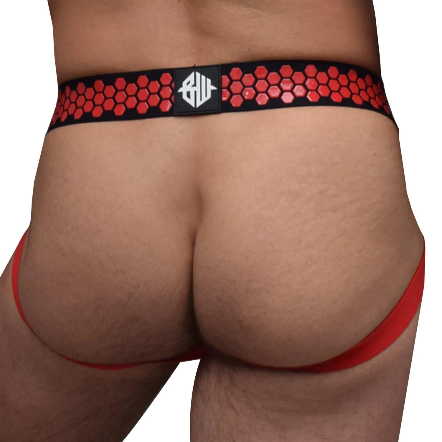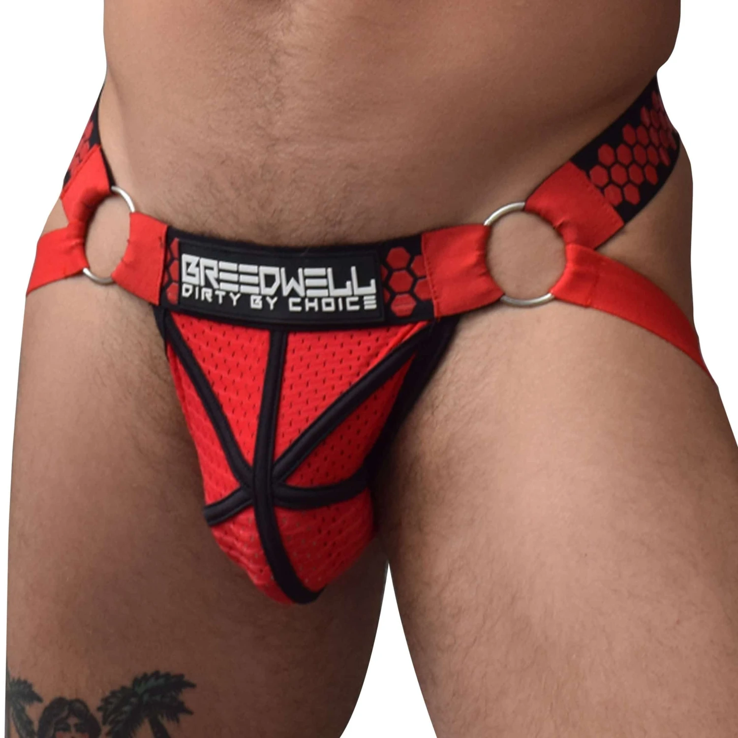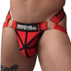 Jockstrap ultra sexy en rĂ©sille stretch. Bandes entrecroisĂ©es soulignant le volume de la poche frontale. Ceinture recouverte d’hexagones en silicone brillant. Straps reliĂ©s par des anneaux mĂ©talliques. Patch Breedwell devant et derriĂšre.