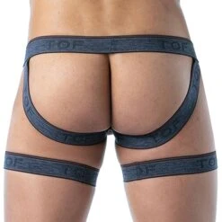 Jockstrap trĂšs sexy intĂ©grant des jarretelles. Bandes Ă©lastiques en microfibre imitant le jean. Peut se porter par dessus votre sous-vĂȘtement⊠ou sans rien en dessous !