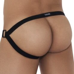 Jockstrap super taille basse en microfibre laminée extensible, douce et confortable, imitant le cuir. Boucles carrées sur les cÎtés. Poche frontale anatomique enveloppant naturellement votre intimité, pour un maintien trÚs agréable et sensuel. Coupe originale trÚs ajustée. Fine ceinture élastique recouverte.