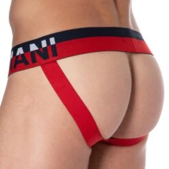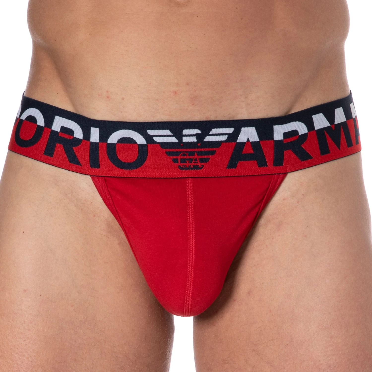 Jockstrap en coton bio extensible, trÚs doux et confortable. Coupe taille basse, simple et élégante. Poche frontale doublée. Large ceinture élastique contrastée signée Emporio Armani.