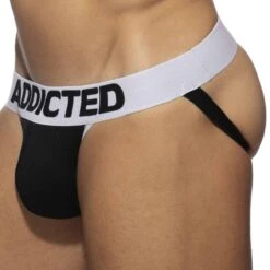 Jockstrap taille basse, sexy et super confortable, en pur coton. Poche frontale non-doublée. Ceinture élastique contrastée signée Addicted.