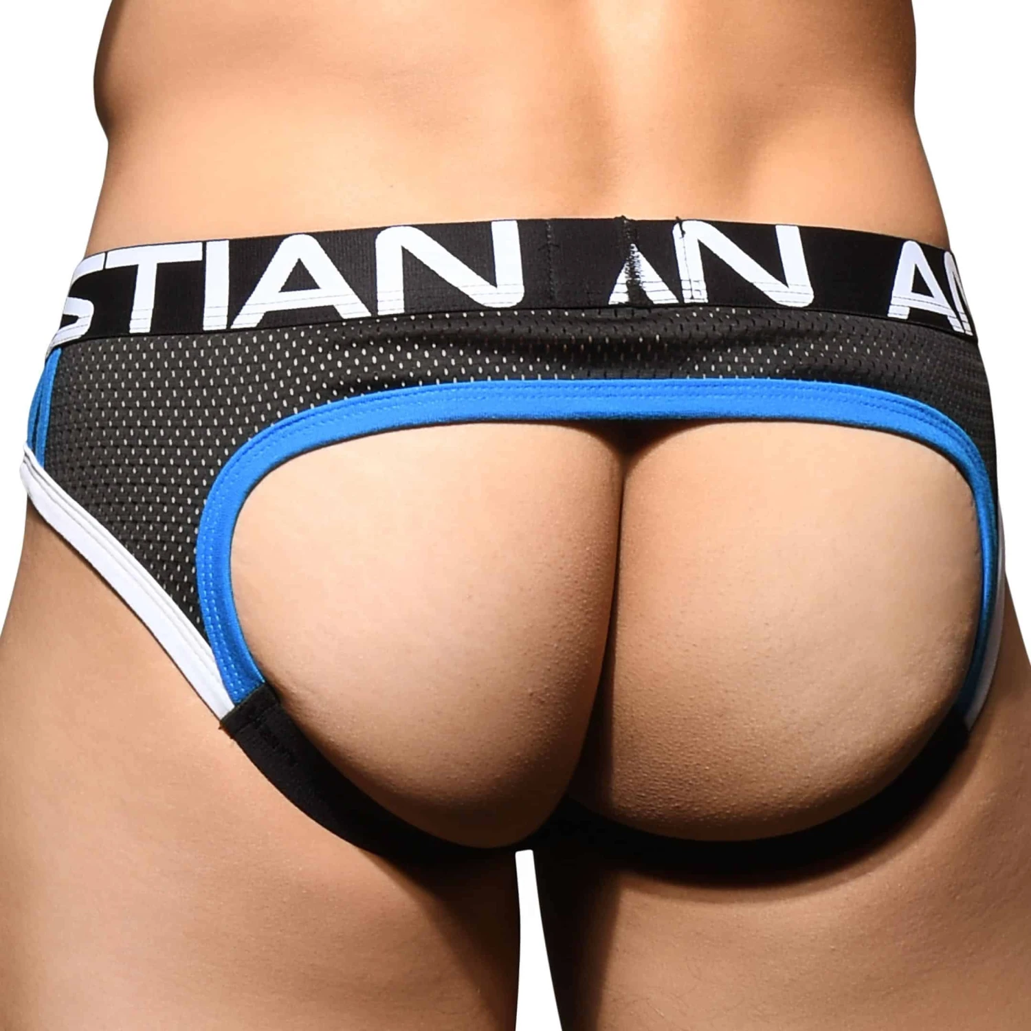 Jockstrap taille basse en coton doux, léger et confortable. EmpiÚcements en mesh sport ajouré et respirant. Technologie Show-It pour un maintien parfait et un effet push up garanti. Détails de couleur contrastée. Ceinture élastique amincissante signée Andrew Christian. Edition Limitée.
