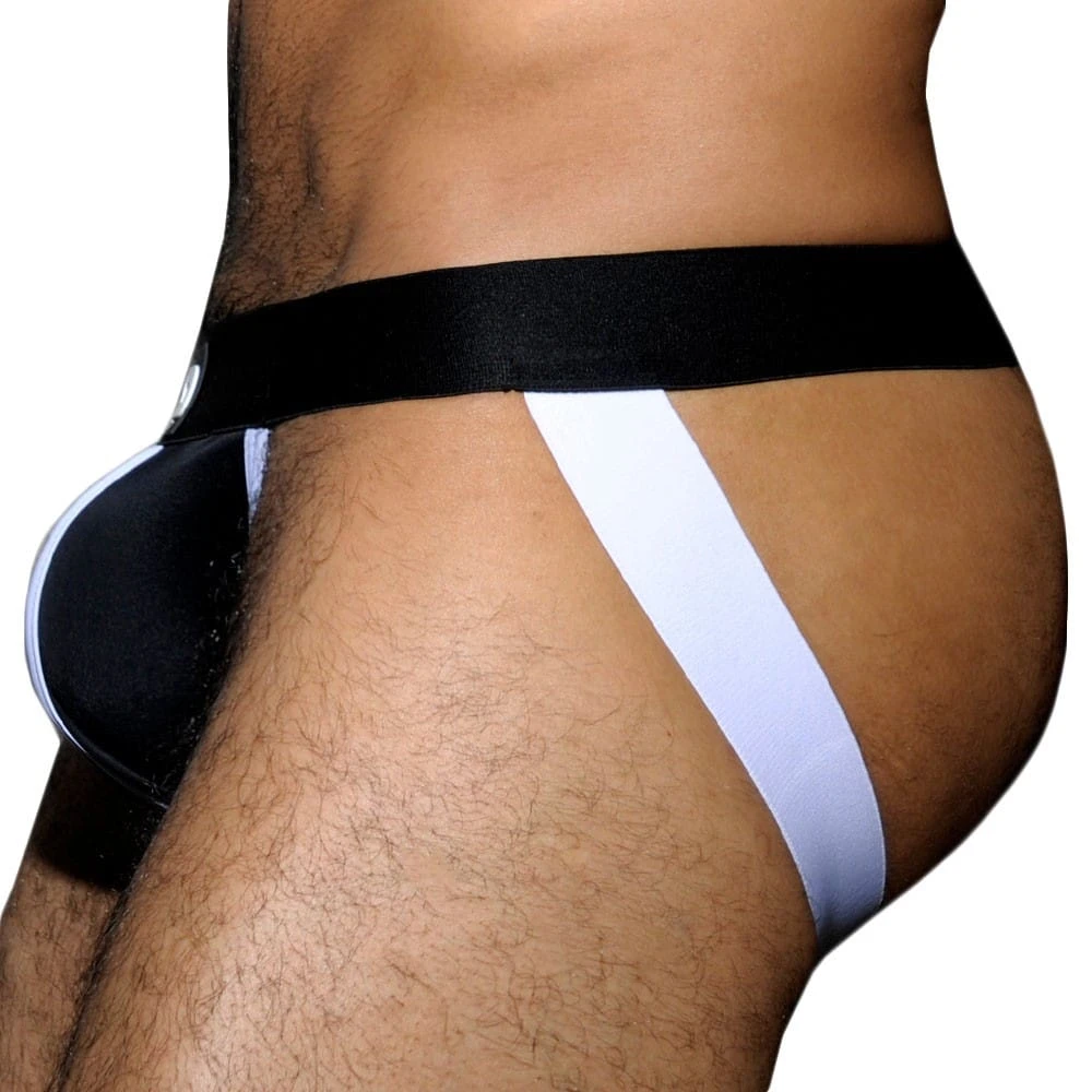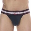 Jockstrap ultra sexy en microfibre. Bandes verticales sur la poche frontale et bordures de couleur contrastée. Logo AD Fetish en silicone sur la ceinture élastique. Fabriqué à Barcelone.