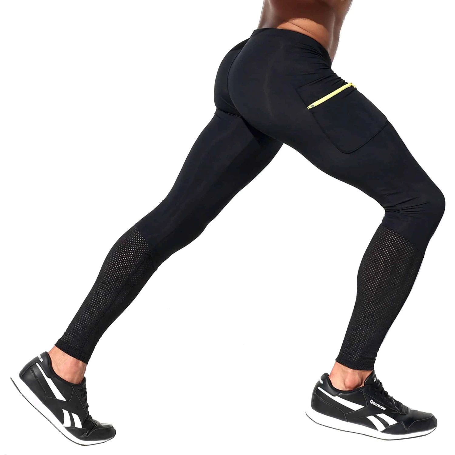 Legging de sport léger et respirant en nylon extensible avec finition mate. Tissu à mémoire de forme. EmpiÚcements en mesh sport sur les mollets. Poche avec fermeture Eclair de couleur contrastée de chaque cÎté. Braguette factice. Ceinture élastique avec cordon de serrage intérieur. Logo Rufskin sur la cuisse gauche. Fabriqué en Californie.