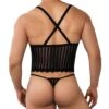 Legging ultra sexy en matiÚre lisse et brillante imitant le latex. EmpiÚcements en voile transparent le long des jambes. Cordon de serrage. Logo Modus Vivendi en silicone sur la ceinture élastique.