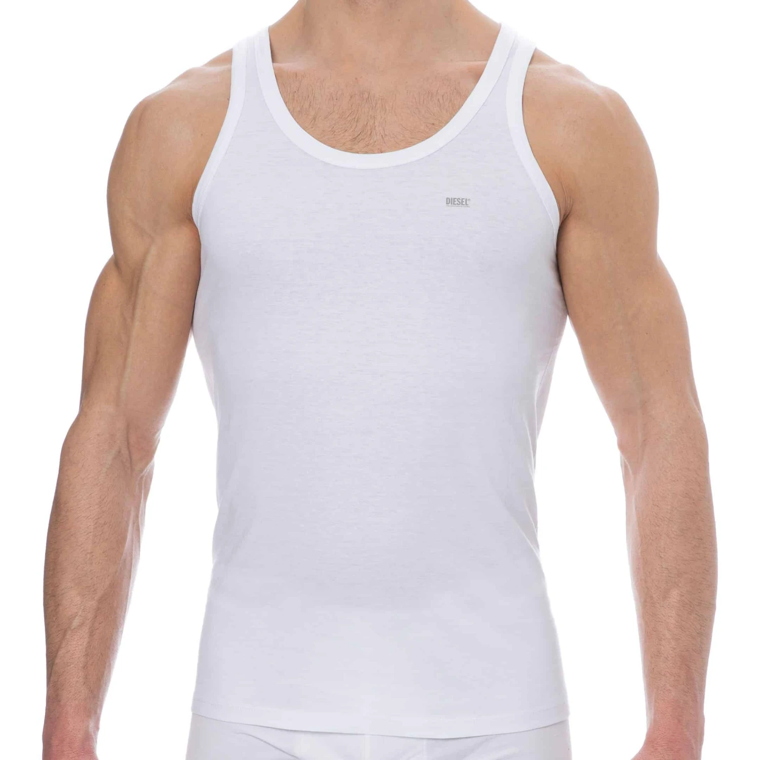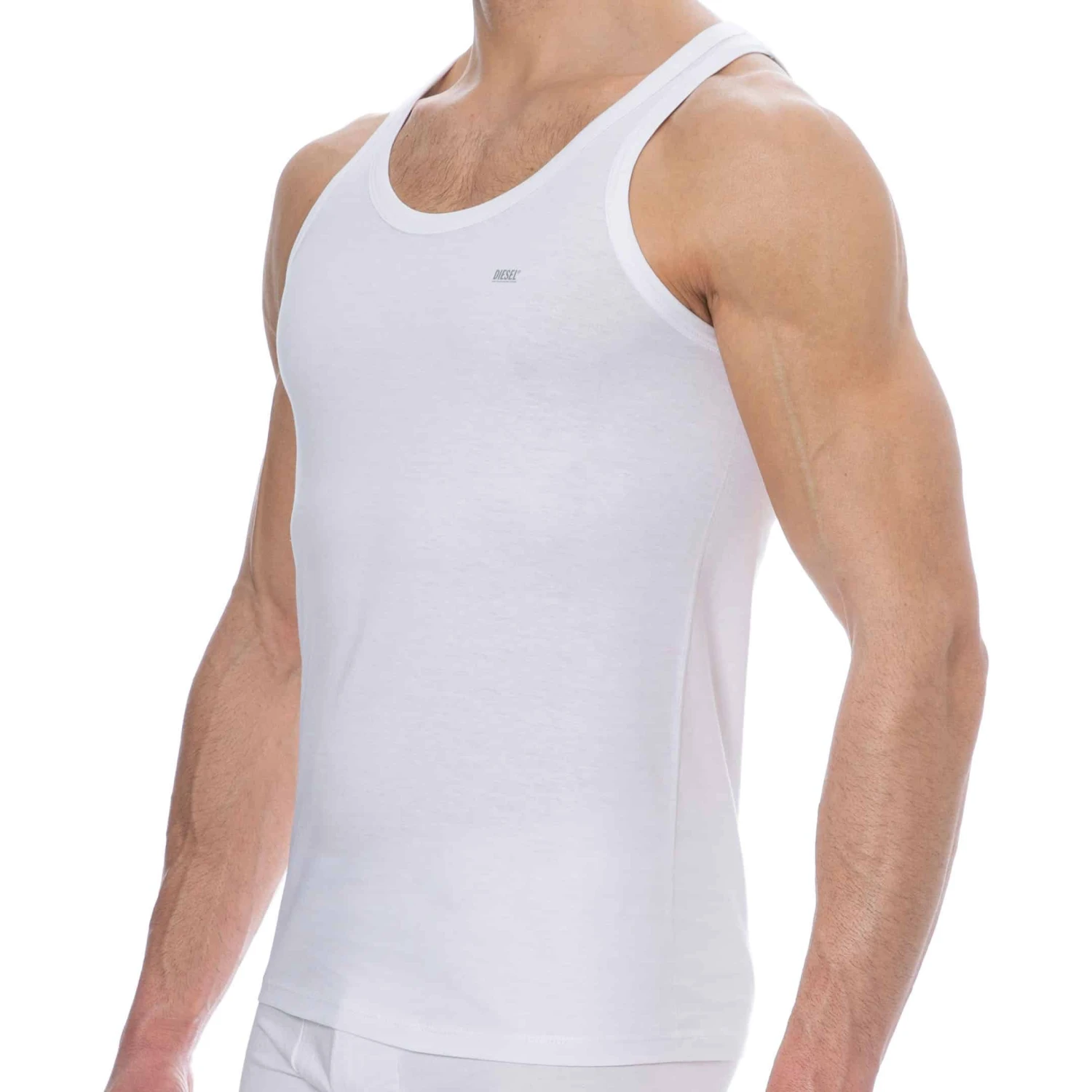 Lot de 2 débardeurs 100% coton. Coupe slim sans couture sur les cÎtés. Logo Diesel imprimé sur la poitrine.