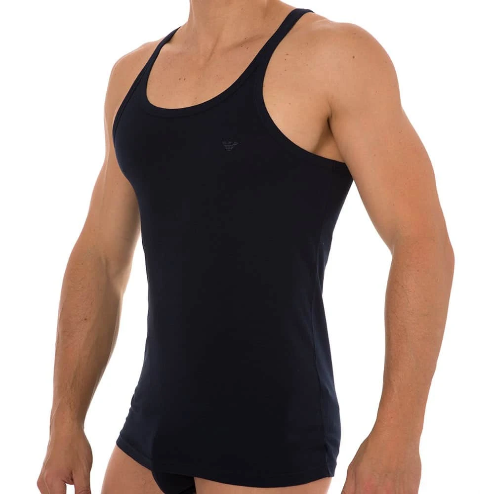 Lot de 2 débardeurs à col rond, en coton doux et confortable. Coupe élégante et ajustée. Logo Armani sur la poitrine.