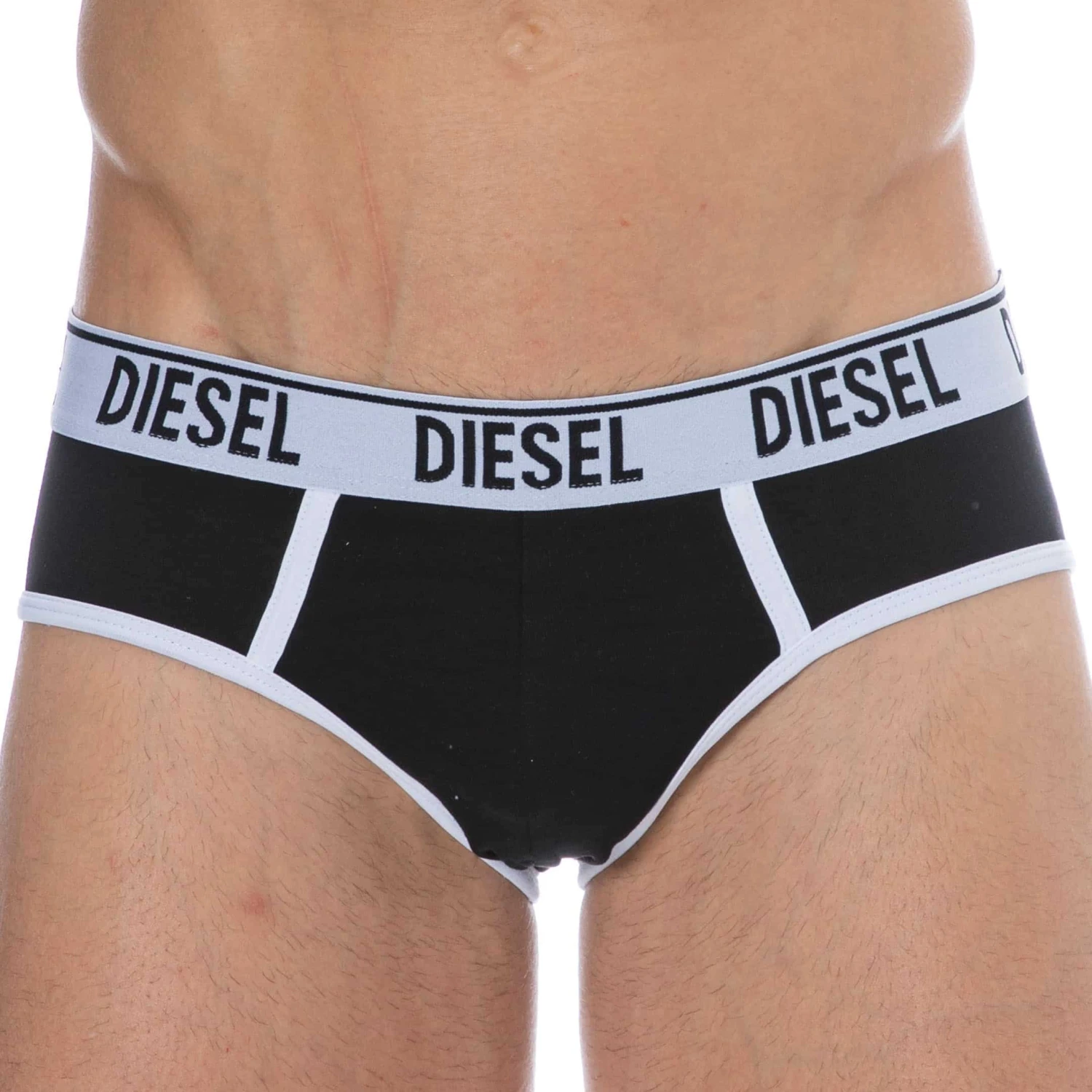 Lot de 2 slips en coton stretch, doux et confortable, avec bordures contrastées. Poche frontale doublée. Ceinture élastique signée Diesel.