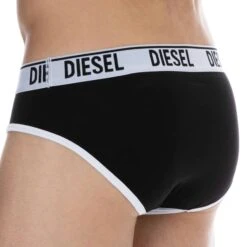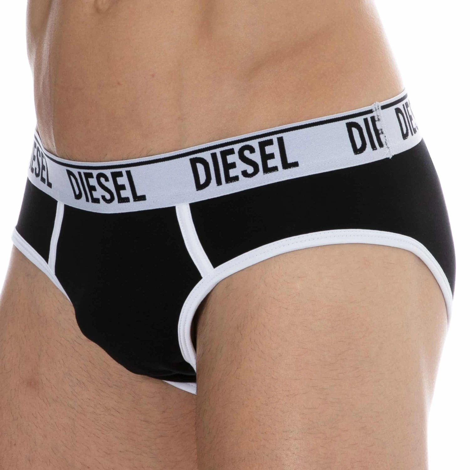 Lot de 2 slips en coton stretch, doux et confortable, avec bordures contrastées. Poche frontale doublée. Ceinture élastique signée Diesel.