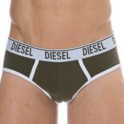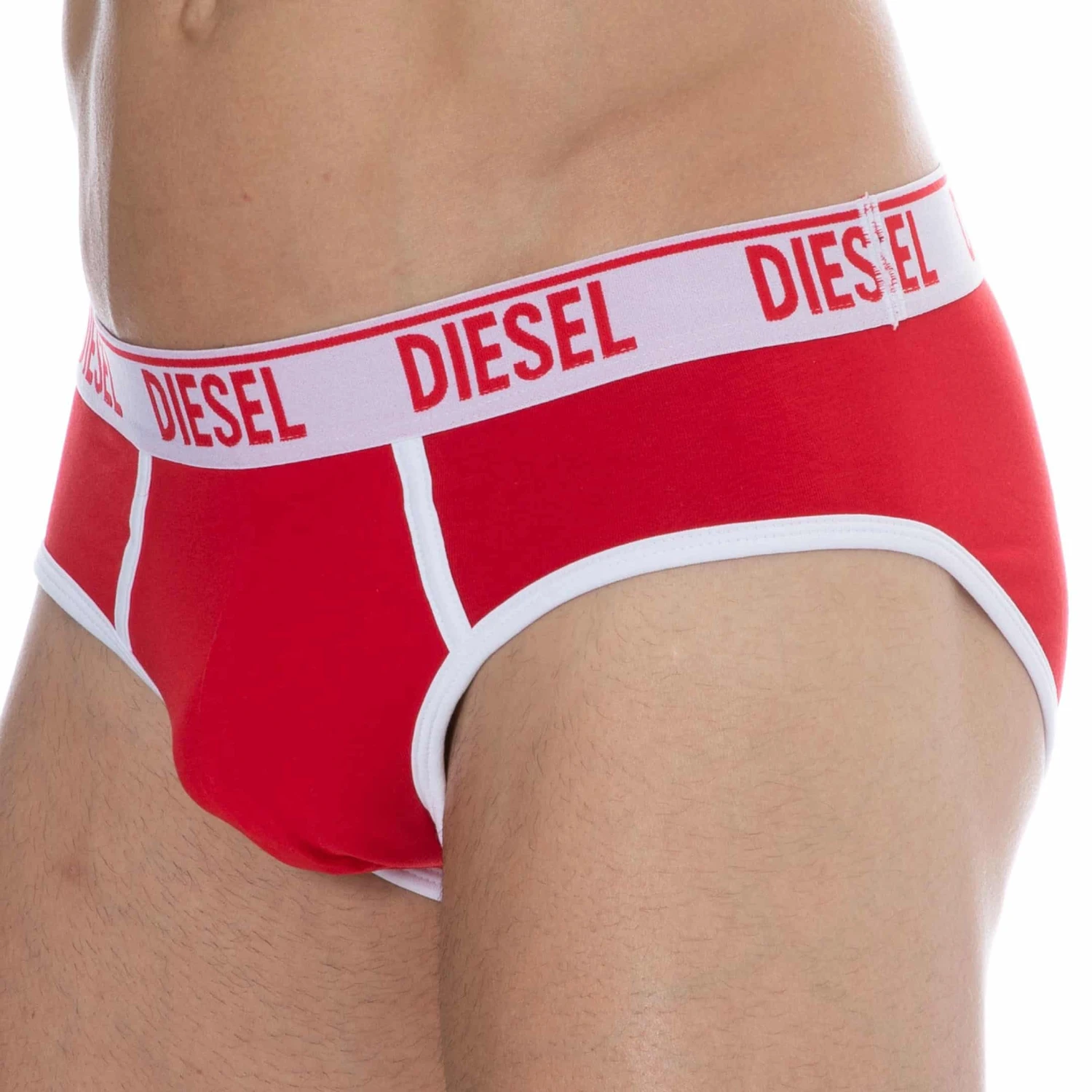 Lot de 2 slips en coton stretch, doux et confortable, avec bordures contrastées. Poche frontale doublée. Ceinture élastique signée Diesel.