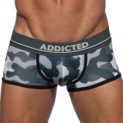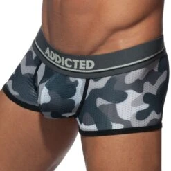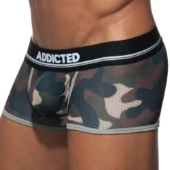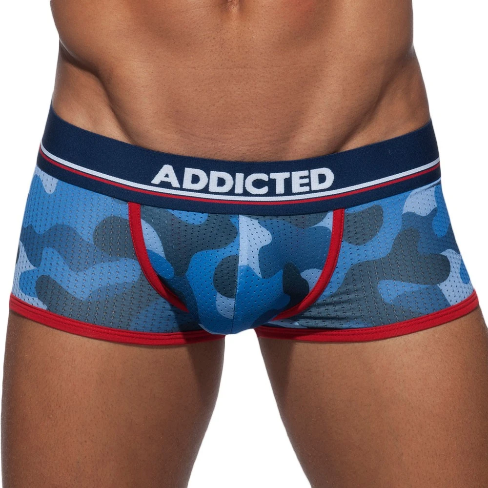 Lot de 3 boxers taille basse en mesh sport ajouré, ultra doux et respirant. Motif camouflage. Poche frontale push up non doublée pour mettre en avant votre masculinité. Bordures de couleur contrastée. Ceinture élastique signée Addicted. Fabriqué à Barcelone.