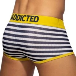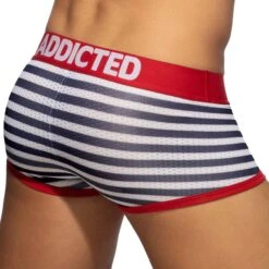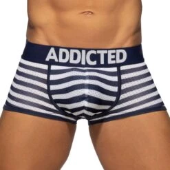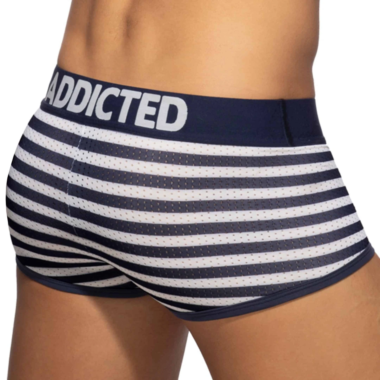 Lot de 3 boxers en mesh respirant et confortable. Rayure horizontale façon mariniÚre. Poche push up pour augmenter votre volume frontal. Ceinture élastique signée Addicted.