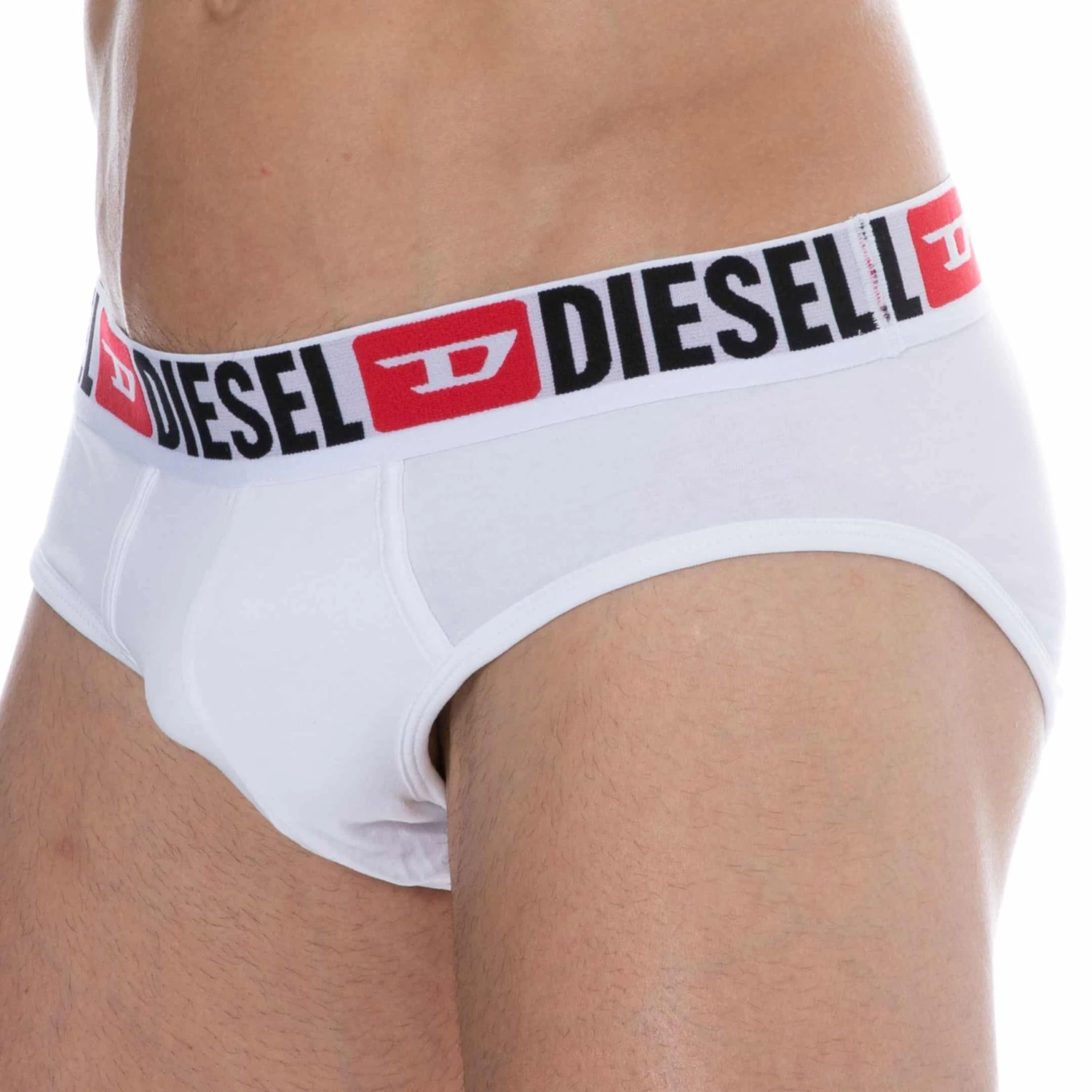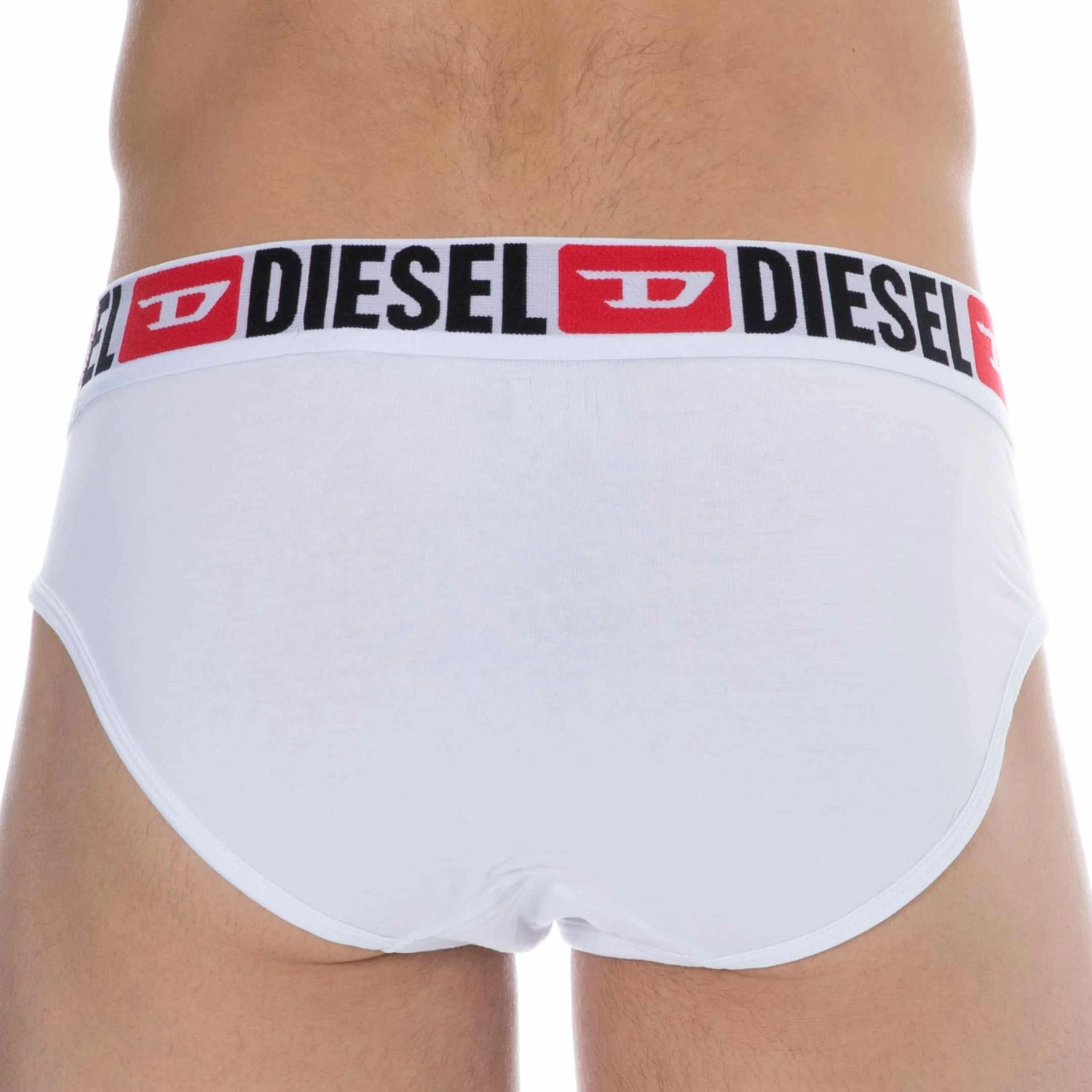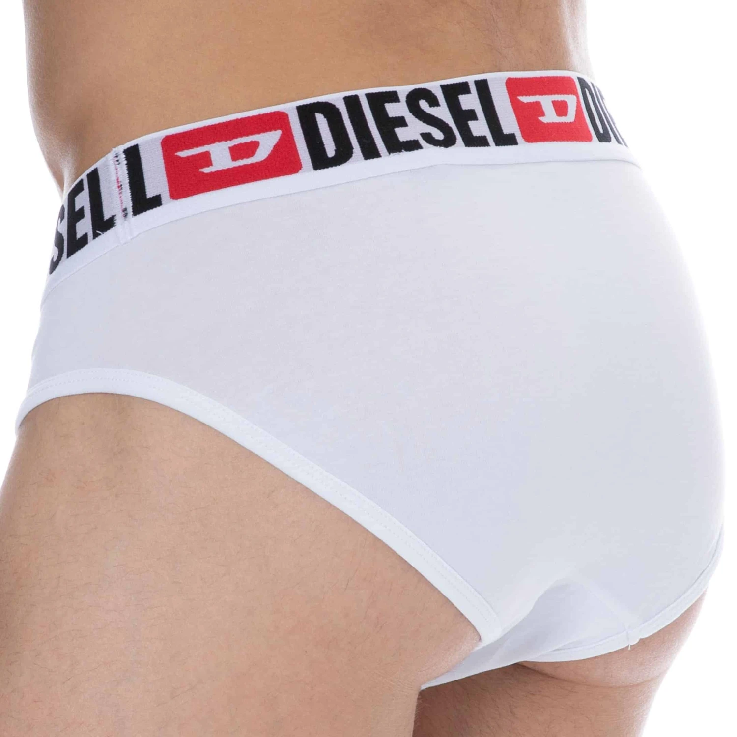 Lot de 3 slips en coton stretch, doux et confortable. Poche frontale doublĂ©e. Ceinture Ă©lastique en jacquard doux ornĂ©e du logo Diesel et de l’emblĂšme Denim Division.