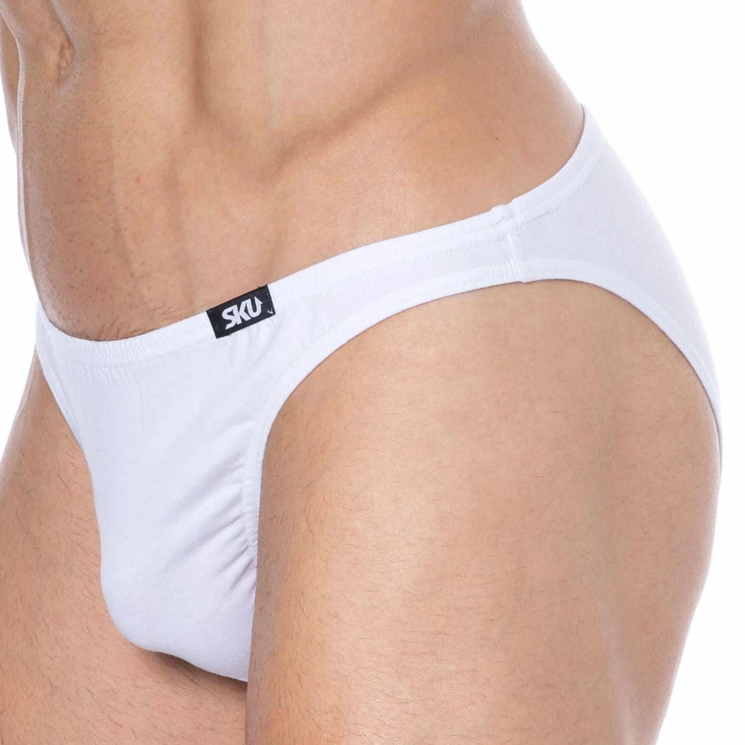 Lot de 3 slips sexy en coton premium doux et extensible de couleur unie. Coupe minimaliste, taille basse et ajustée. Poche frontale préformée assurant un excellent maintien. Confort enveloppant sur les fesses. Etiquette SKU cousue sur la fine ceinture élastique.