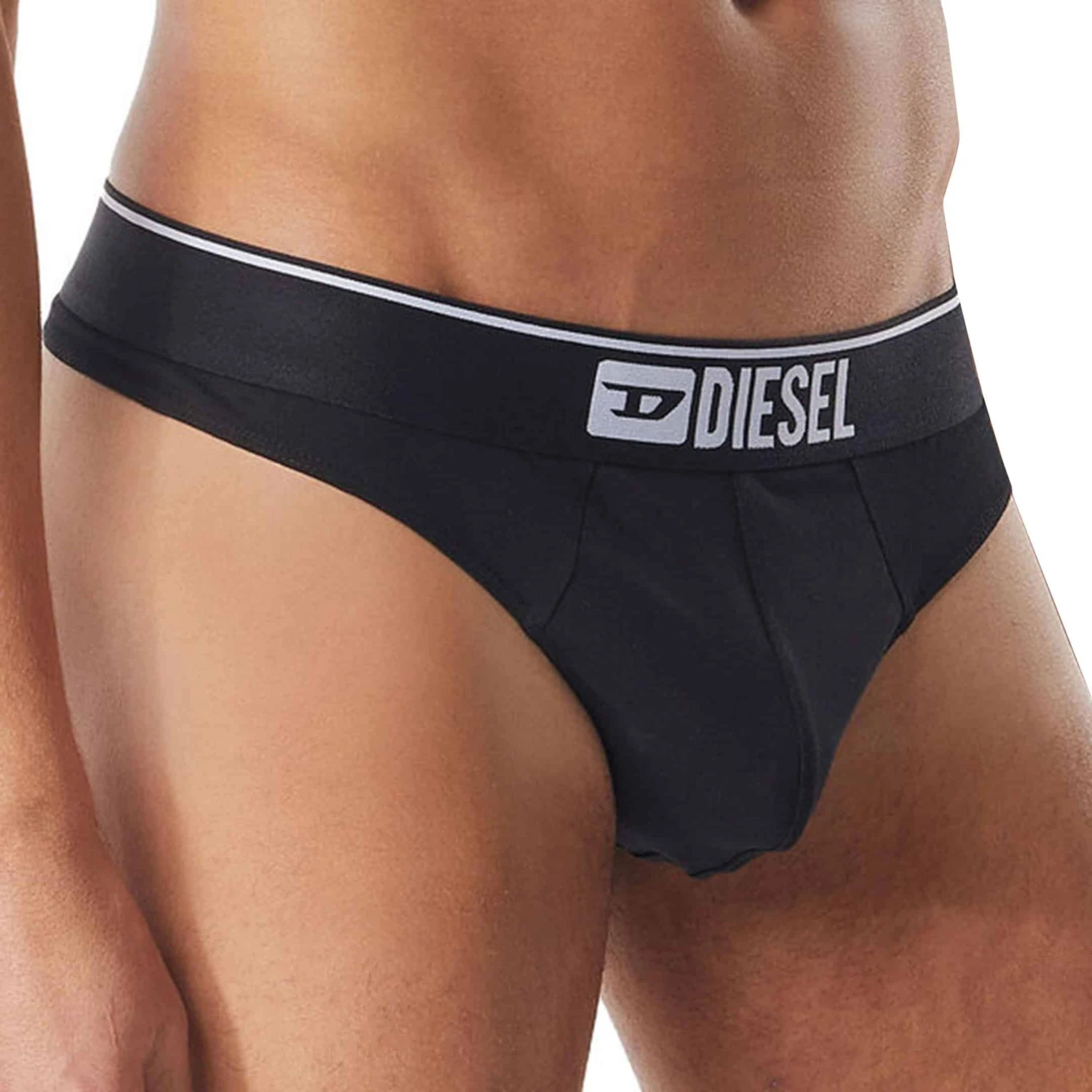 Lot de 3 strings unis en coton stretch doux et confortable. Poche frontale doublée. Ceinture élastique signée du logo Diesel Denim Division.