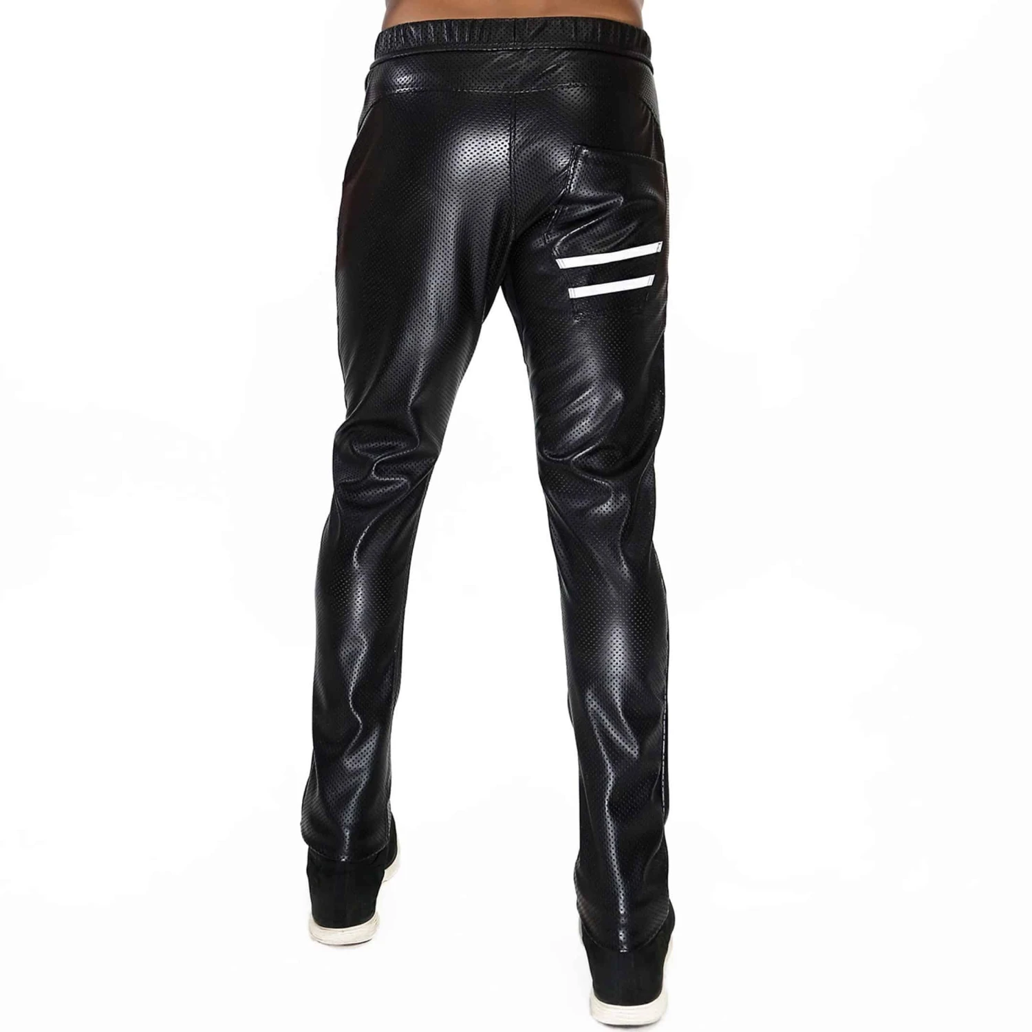 Pantalon taille basse en microfibre perforĂ©e imitant le cuir. Coupe ajustĂ©e avec renforcement Ă l’entrejambe. 4 poches dont 1 avec fermeture Eclair. DĂ©tails contrastĂ©s et rĂ©flĂ©chissants. Braguette factice. Ceinture Ă©lastique recouverte avec cordon de serrage. Ecusson TOF sur la cuisse droite. Fabrication française.