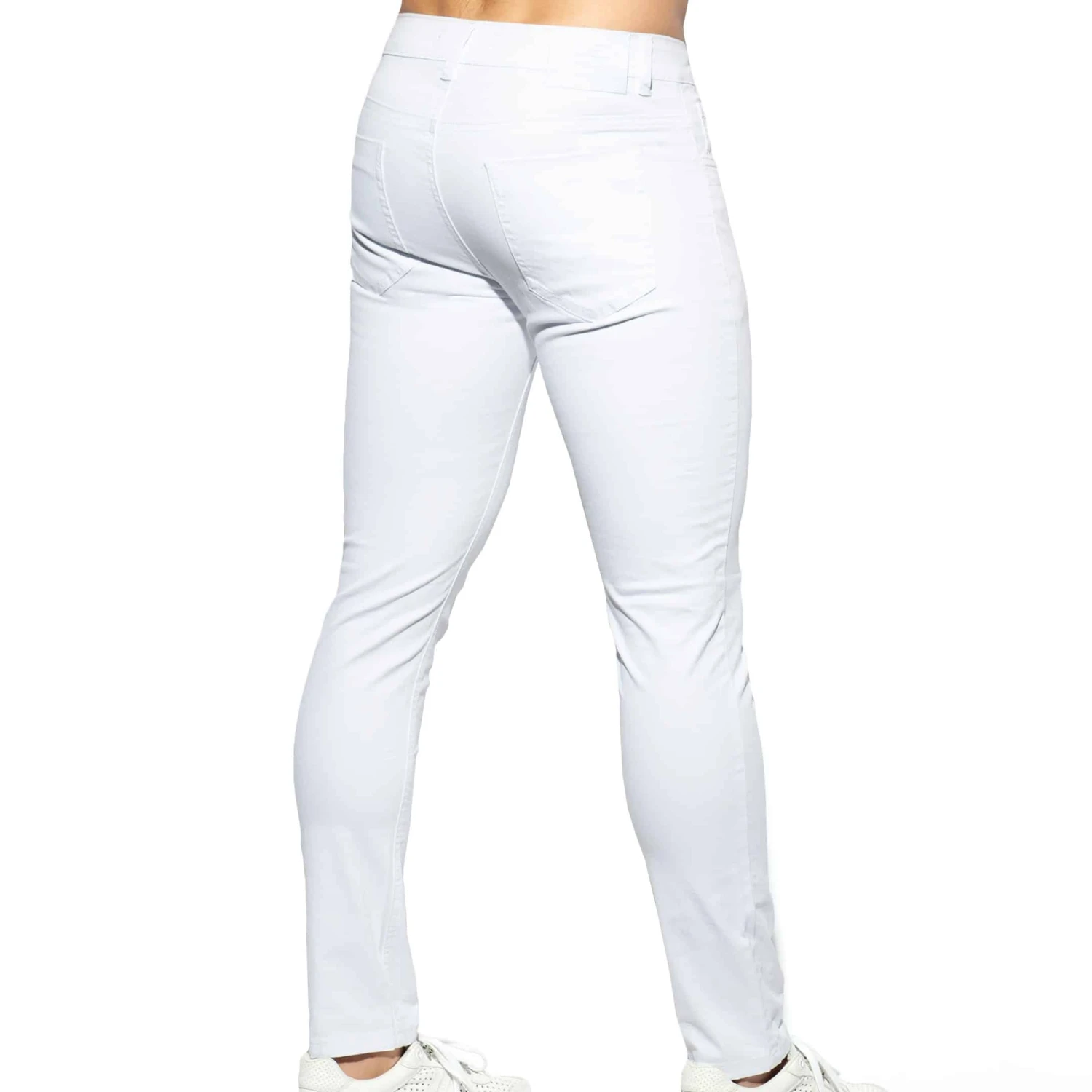 Pantalon en coton stretch. Coupe slim trĂšs ajustĂ©e et serrĂ©e au niveau des jambes. Braguette Ă fermeture Eclair et 1 bouton. 5 poches. Passants de ceinture. Etiquette ES Collection en silicone Ă l’arriĂšre. Taille US.