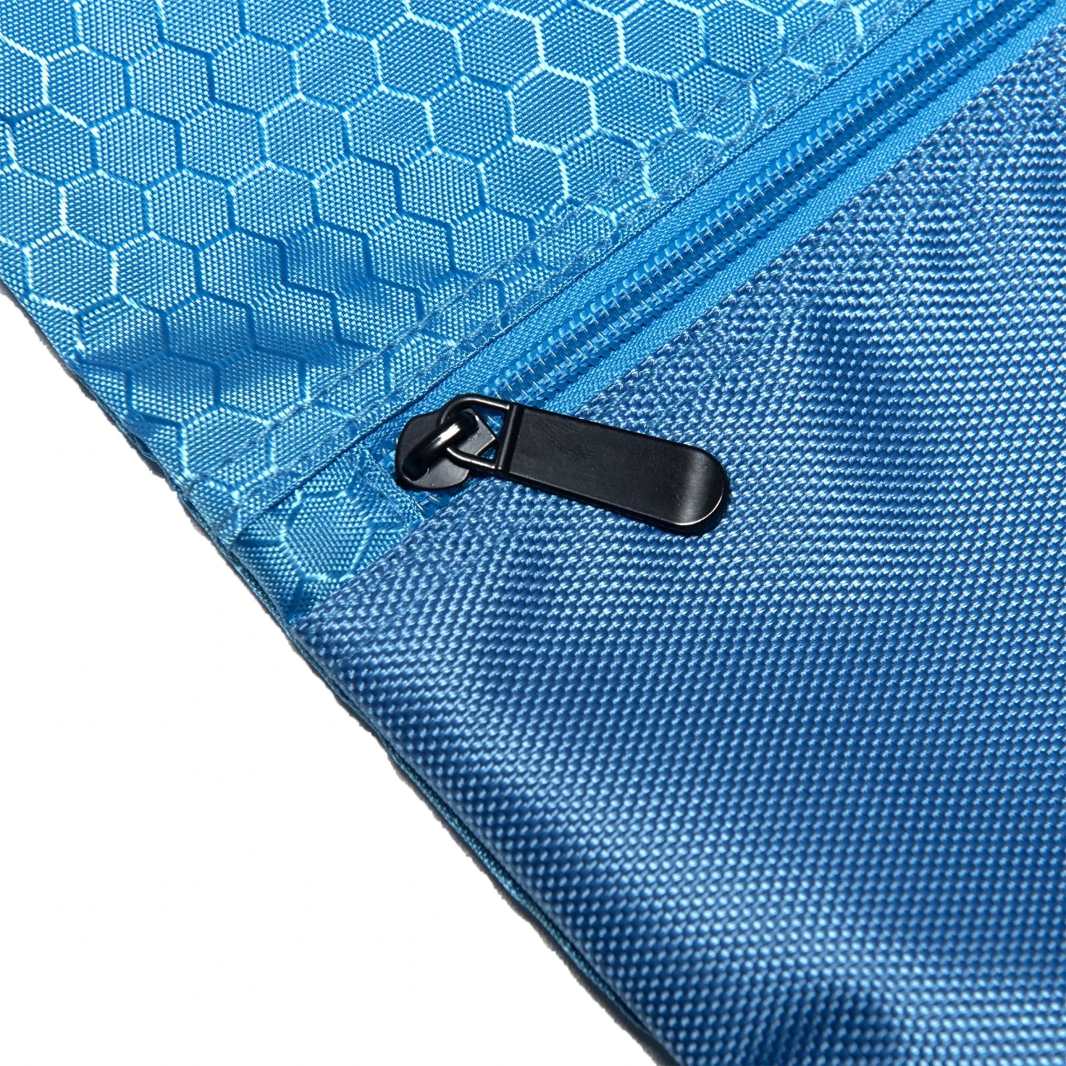 Sac de plage en microfibre légÚre. Grande poche extérieure zippée. Petite poche intérieure avec fermeture Eclair. LaniÚres réglables réglables pour fermer le sac et le porter sur le dos. Logo ES Collection. Dimensions : H 45 x L 36 cm.
