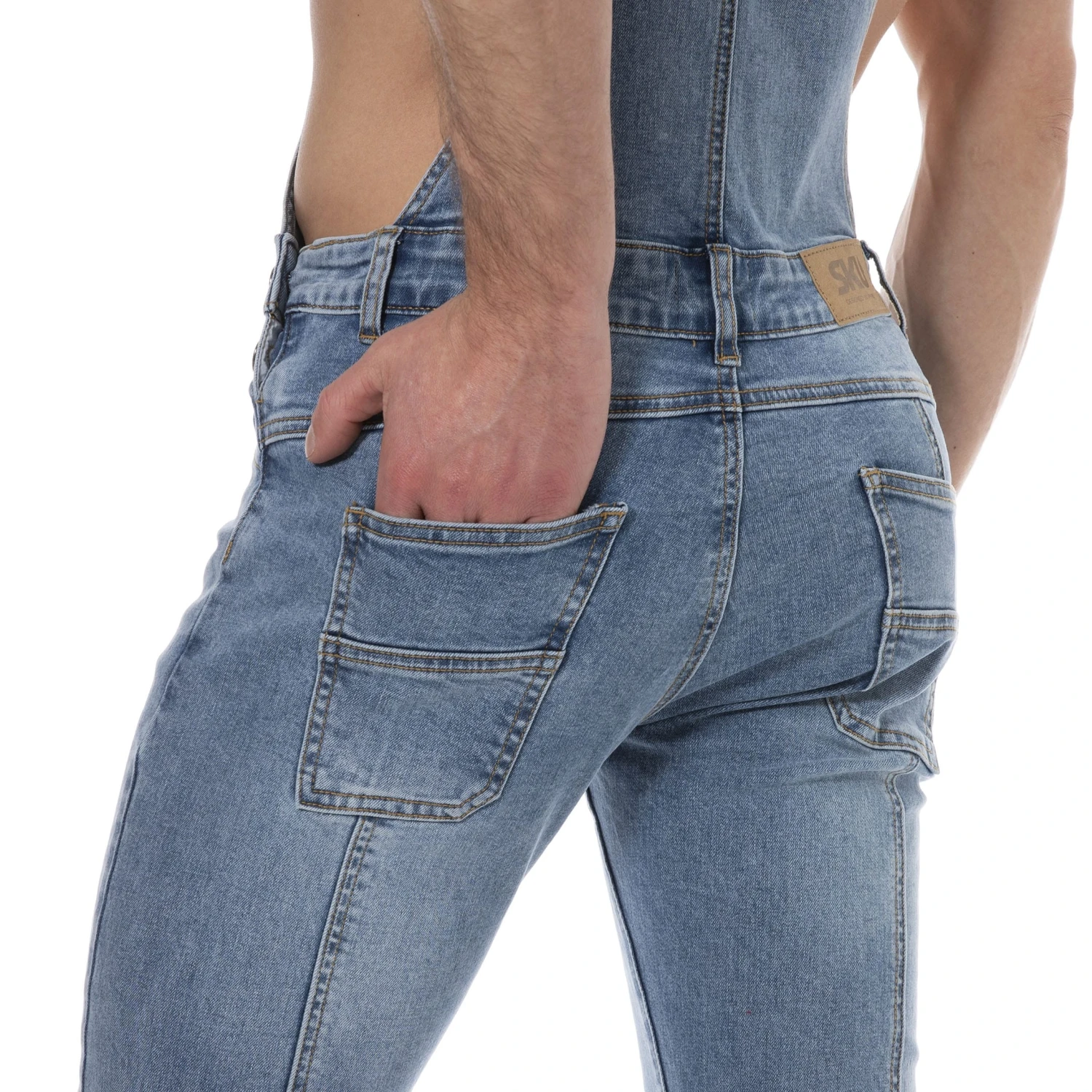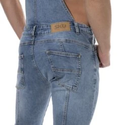 Salopette longue en jeans stretch Ă la coupe slim, sexy et trĂšs ajustĂ©e. Couture verticale derriĂšre sur toute la hauteur de la jambe. 1 grande poche sur la poitrine avec 2 compartiments Ă stylos sĂ©parĂ©s. 2 poches Ă l’avant et deux Ă l’arriĂšre. Bretelles rĂ©glables, dĂ©tachables Ă l’aide de pinces en mĂ©tal. Fermeture Ă double bouton de chaque cĂŽtĂ©. Braguette factice. 5 passants de ceinture. Etiquette SKU sur la poche arriĂšre droite. taille US.