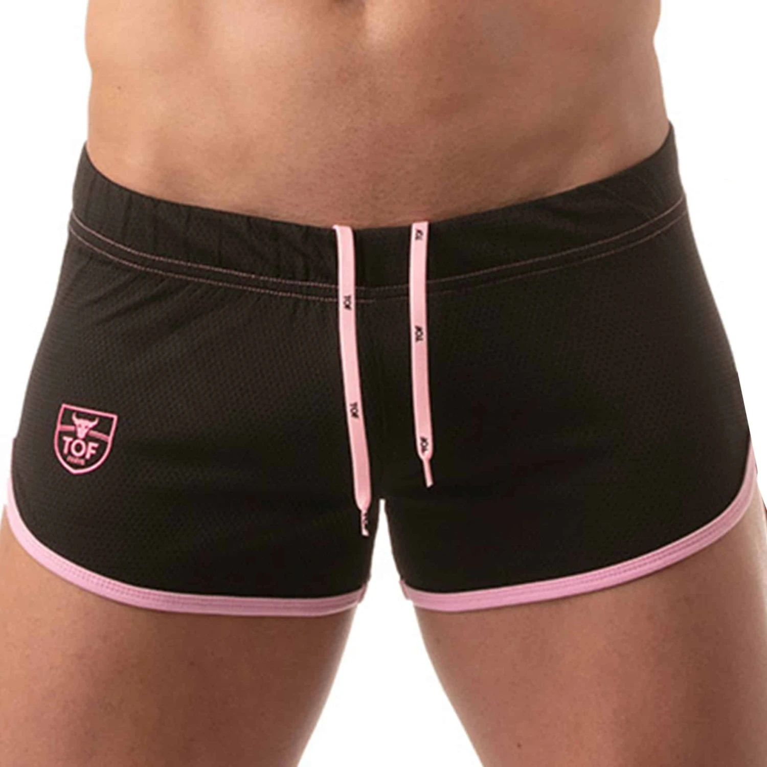 Short sport en mesh léger et respirant. Coupe courte, rétro, échancrée sur le cÎté. Poche arriÚre. Détails de couleur contrastée. Ecusson TOF Paris imprimé sur la cuisse droite. Braguette factice. Ceinture élastique avec cordon de serrage intérieur. Fabrication française.