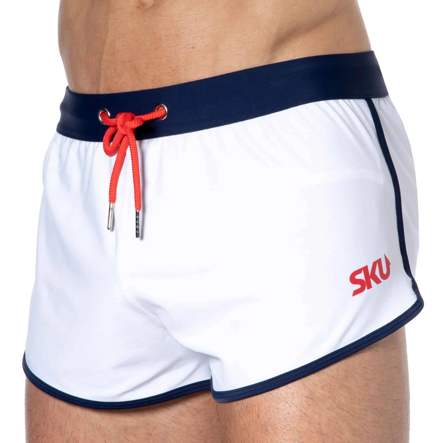 Short de bain sport en microfibre séchant rapidement. Bordures de couleur contrastée. Slip intérieur en mesh fin pour un grand confort. Logo SKU imprimé sur la cuisse gauche. Ceinture élastique avec cordon de serrage.