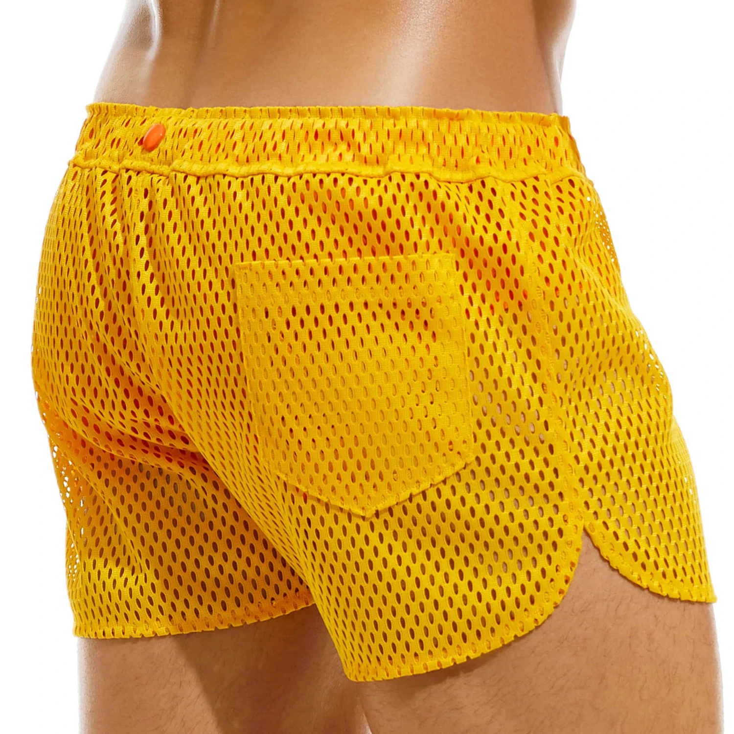 Maillot de bain 2 en 1 très original en microfibre sĂ©chant rapidement. Une combinaison atypique entre un short jogger en maille ajourĂ©e et un slip en voile transparent dĂ©tachable Ă l’aide d’un bouton-pression. A porter ensemble ou sĂ©parĂ©ment !