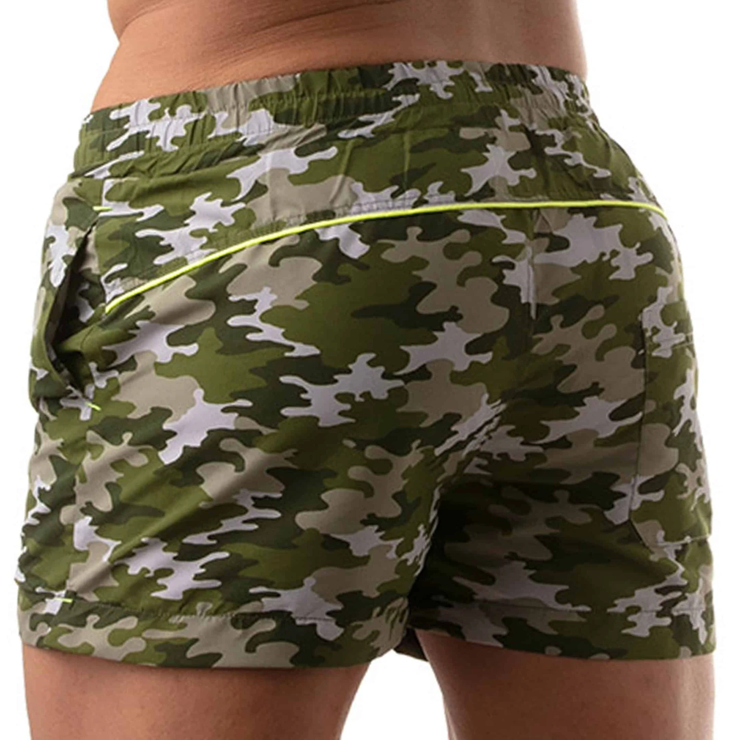 Short de bain trÚs confortable en microfibre douce et légÚre. Coupe mi-cuisse . Braguette factice. 3 poches. Slip intérieur en mesh. Logo TOF imprimé sur la cuisse droite. Détails de couleur fluo. Ceinture élastique avec cordon de serrage. Fabrication française.