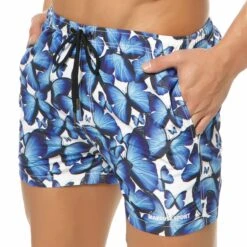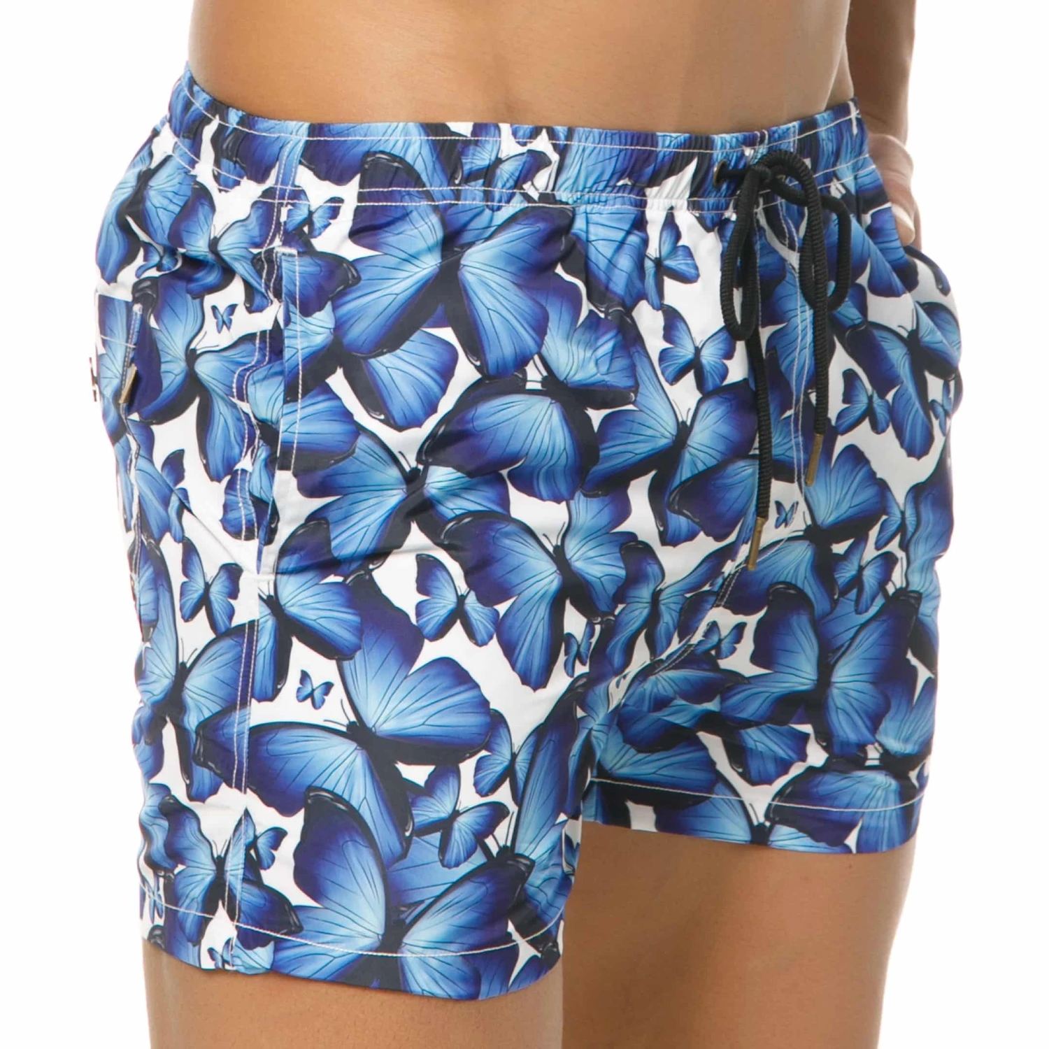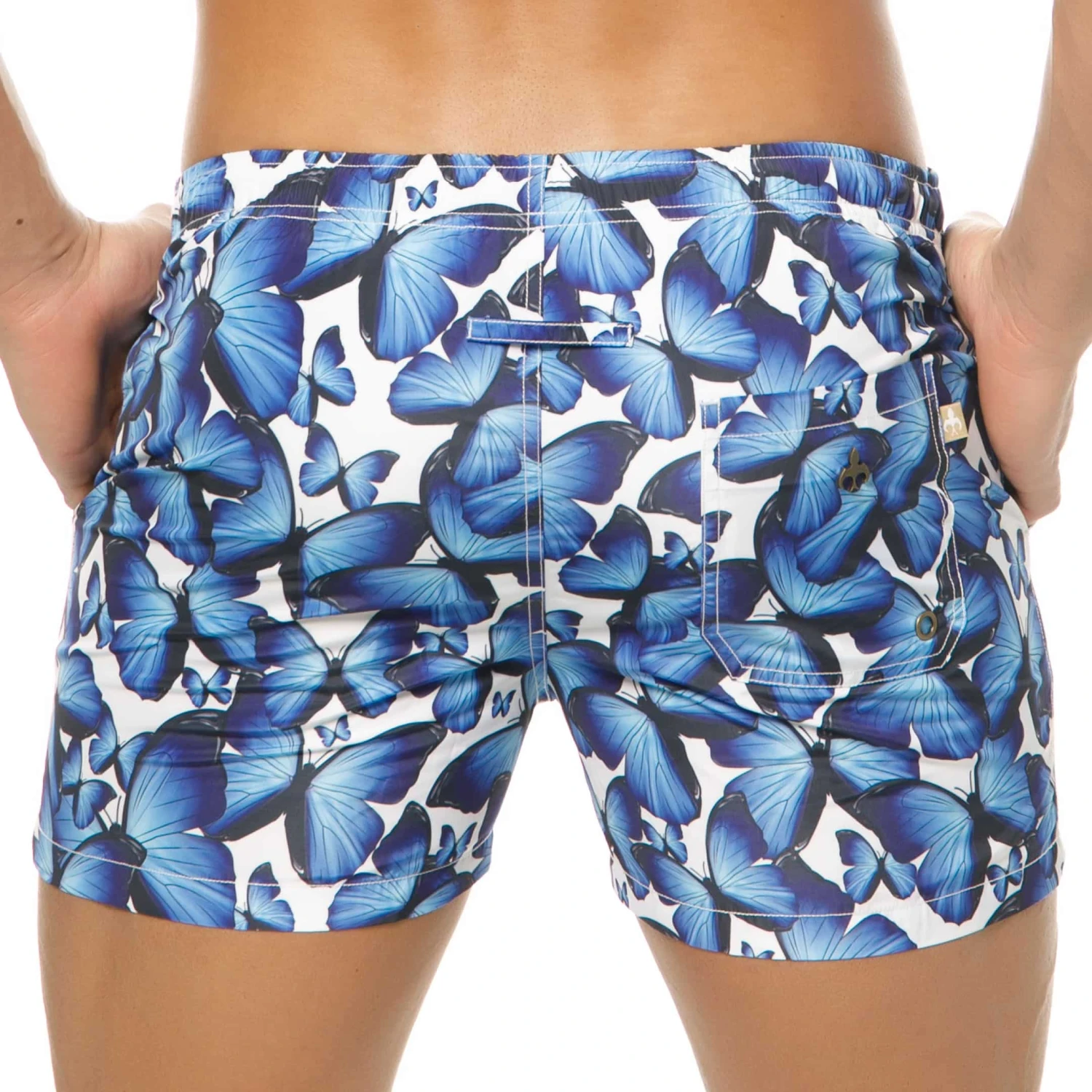 Short de bain taille basse en microfibre confortable et rĂ©sistante. ImprimĂ© papillons de couleur intense. Slip intĂ©rieur en mesh. 3 poches. Braguette factice. Ceinture Ă©lastique avec cordon de serrage. Logo Marcuse Sport sur la cuisse gauche et logo mĂ©tallique Ă l’arriĂšre.