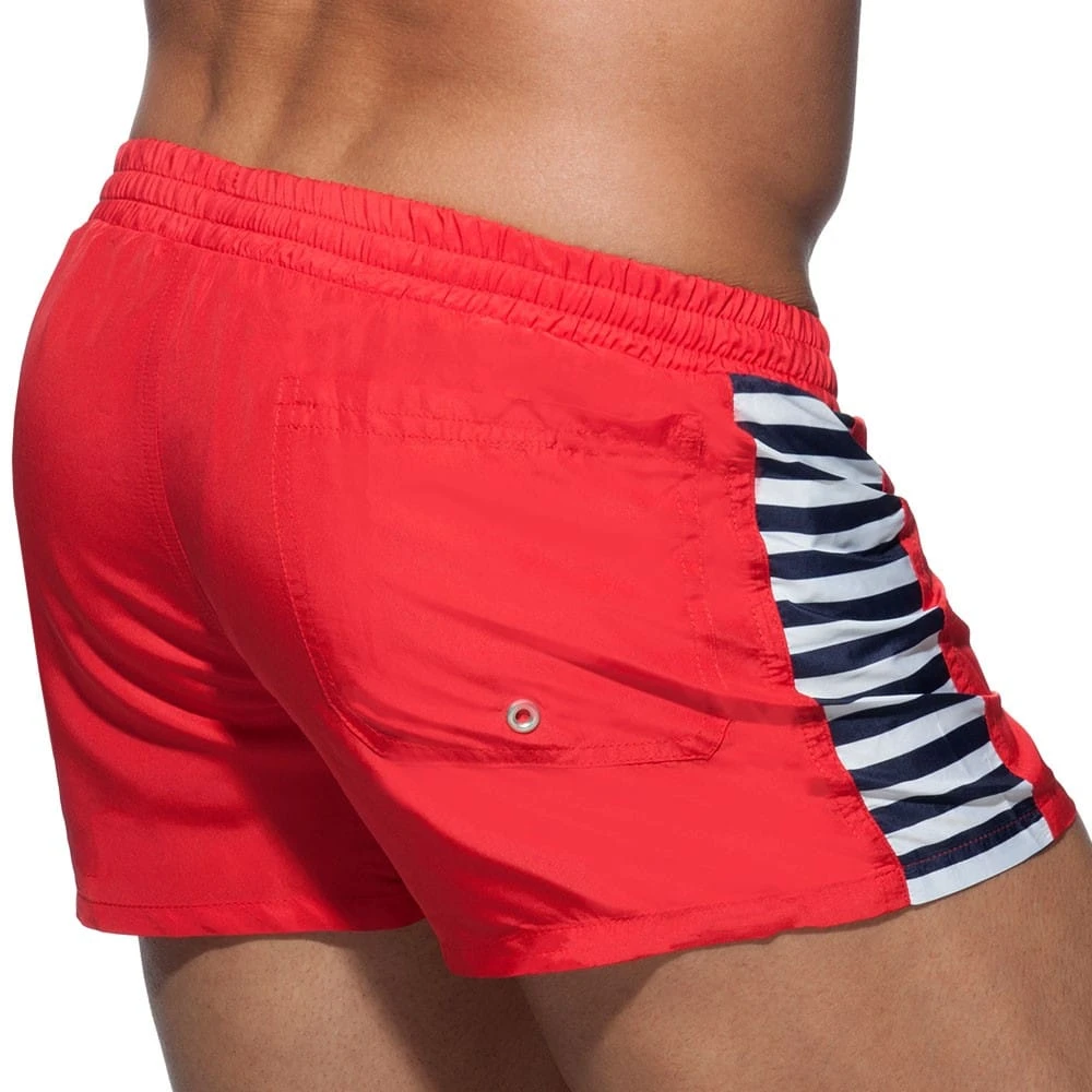 Short de bain taille basse en microfibre Ă sĂ©chage rapide. Rayures façon mariniĂšre sur les cĂŽtĂ©s. Slip intĂ©rieur U-Shape en mesh pour un grand confort. Poche arriĂšre avec oeillet d’Ă©coulement de l’eau. Logo Addicted en silicone sur la cuisse gauche. Ceinture Ă©lastique avec cordon de serrage. FabriquĂ© Ă Barcelone.