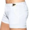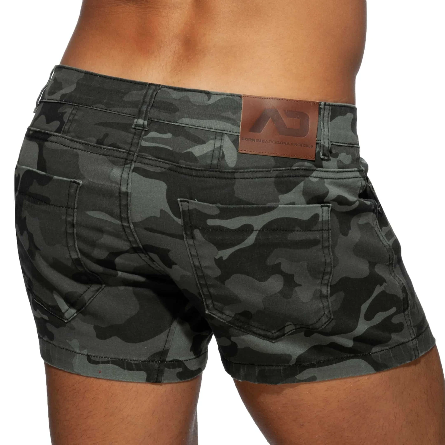 Short en jeans stretch trĂšs rĂ©sistant et confortable. ImprimĂ© camouflage. Coupe taille basse, sexy et ajustĂ©e. 3 poches Ă l’avant et 2 poches Ă l’arriĂšre. Braguette Ă fermeture Eclair et bouton mĂ©tallique. Passants de ceinture. Taille US.
